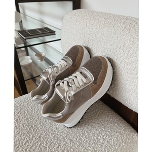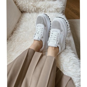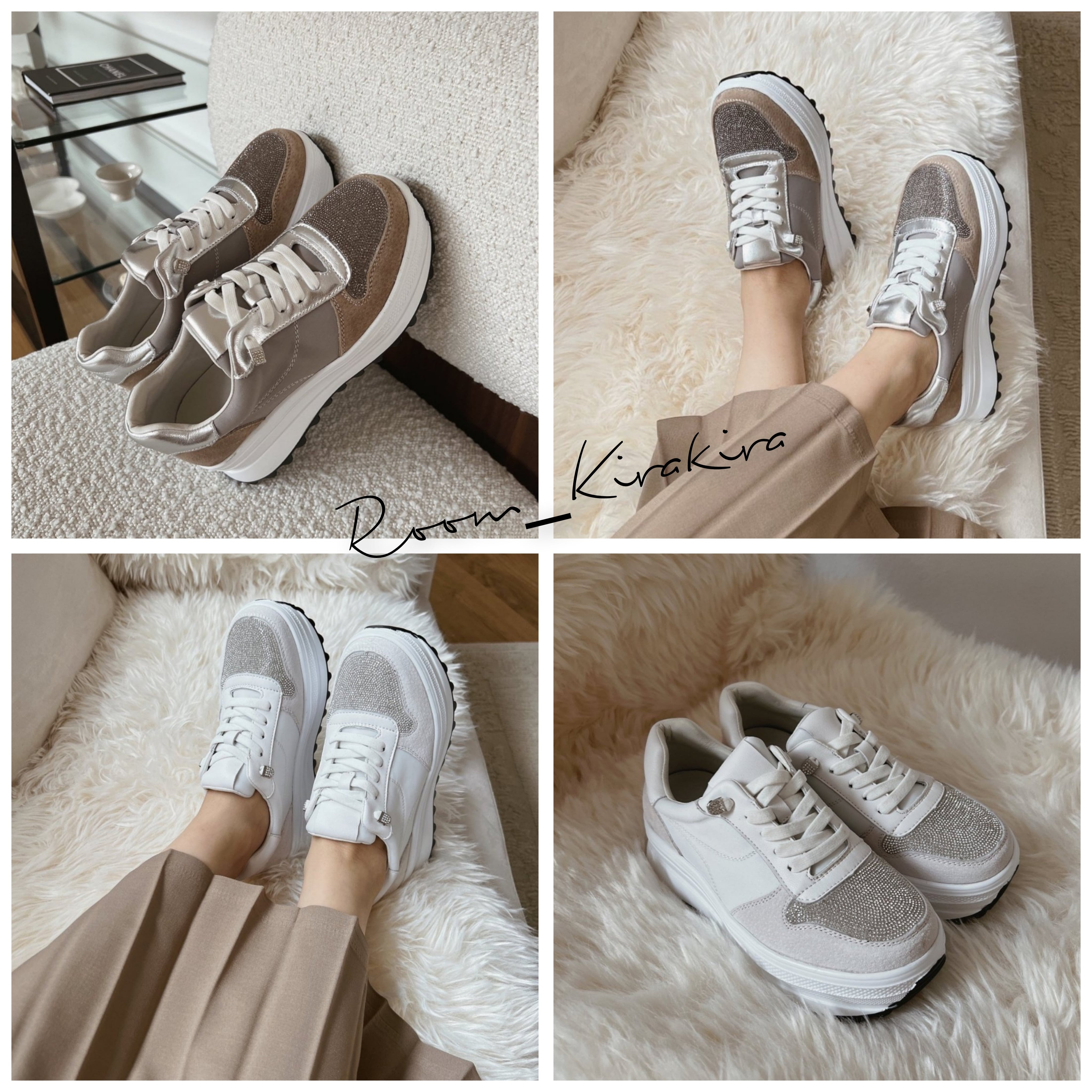 ラインストーンをあしらった、キラキラ感がとてもお洒落な、高級感溢れる牛革製スニーカーです。