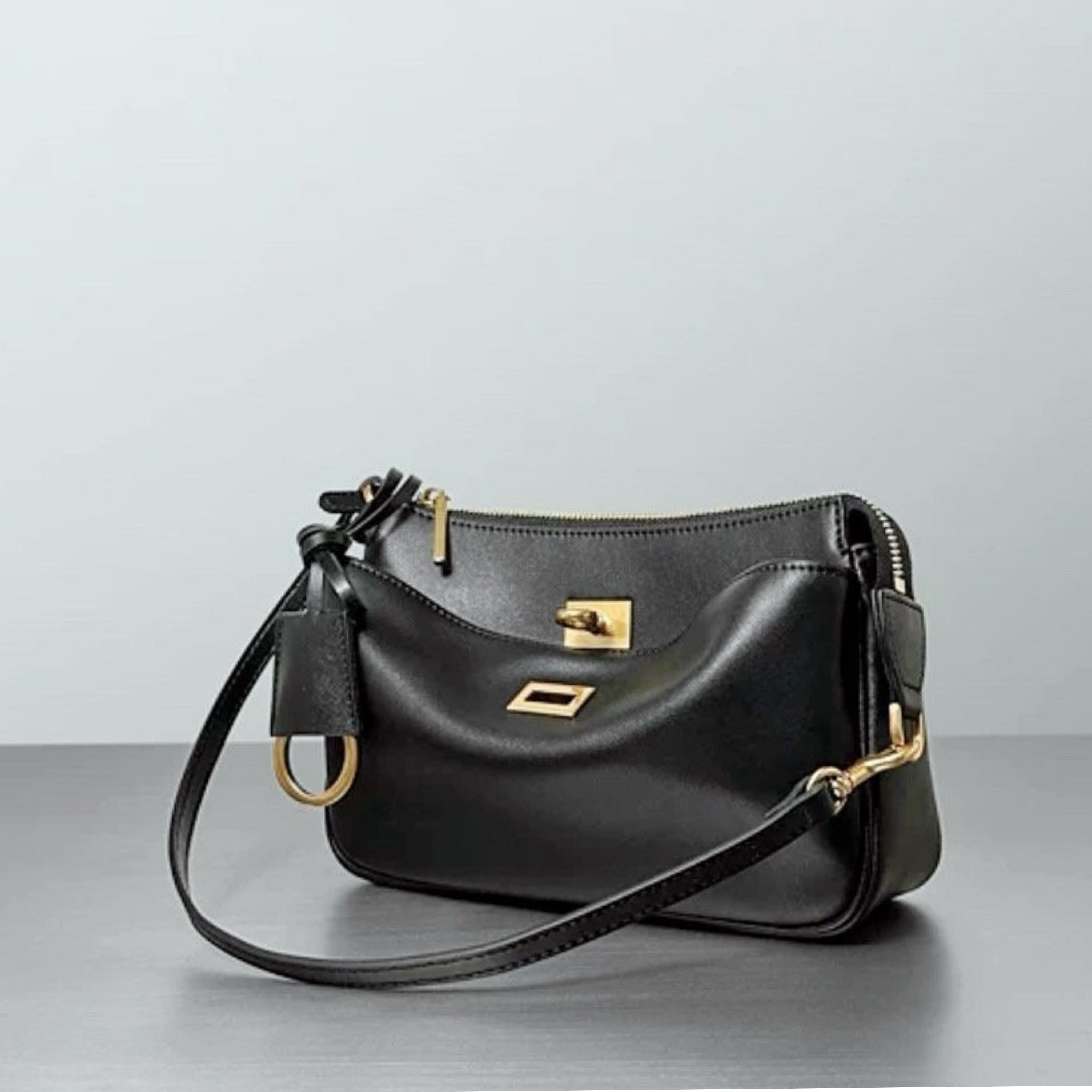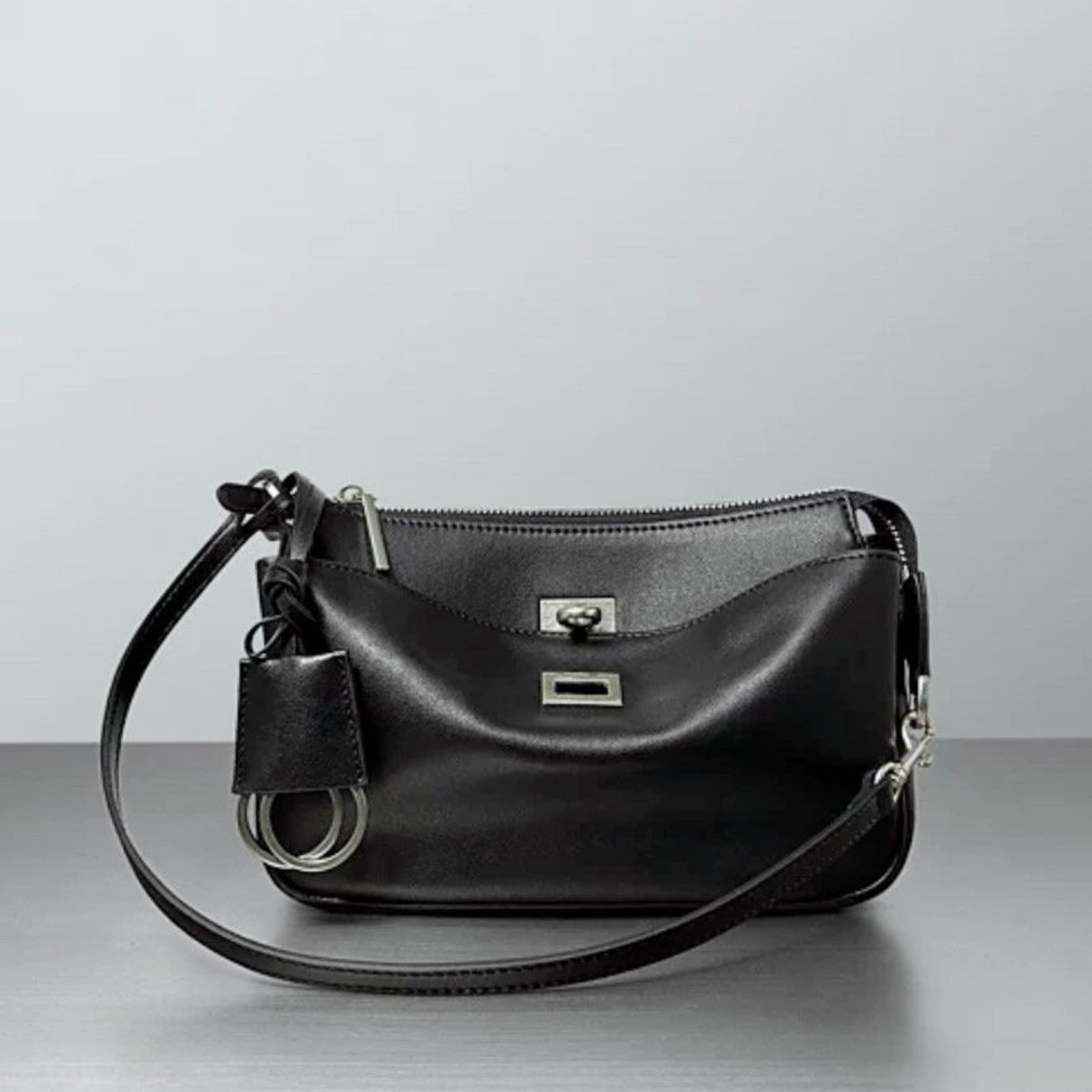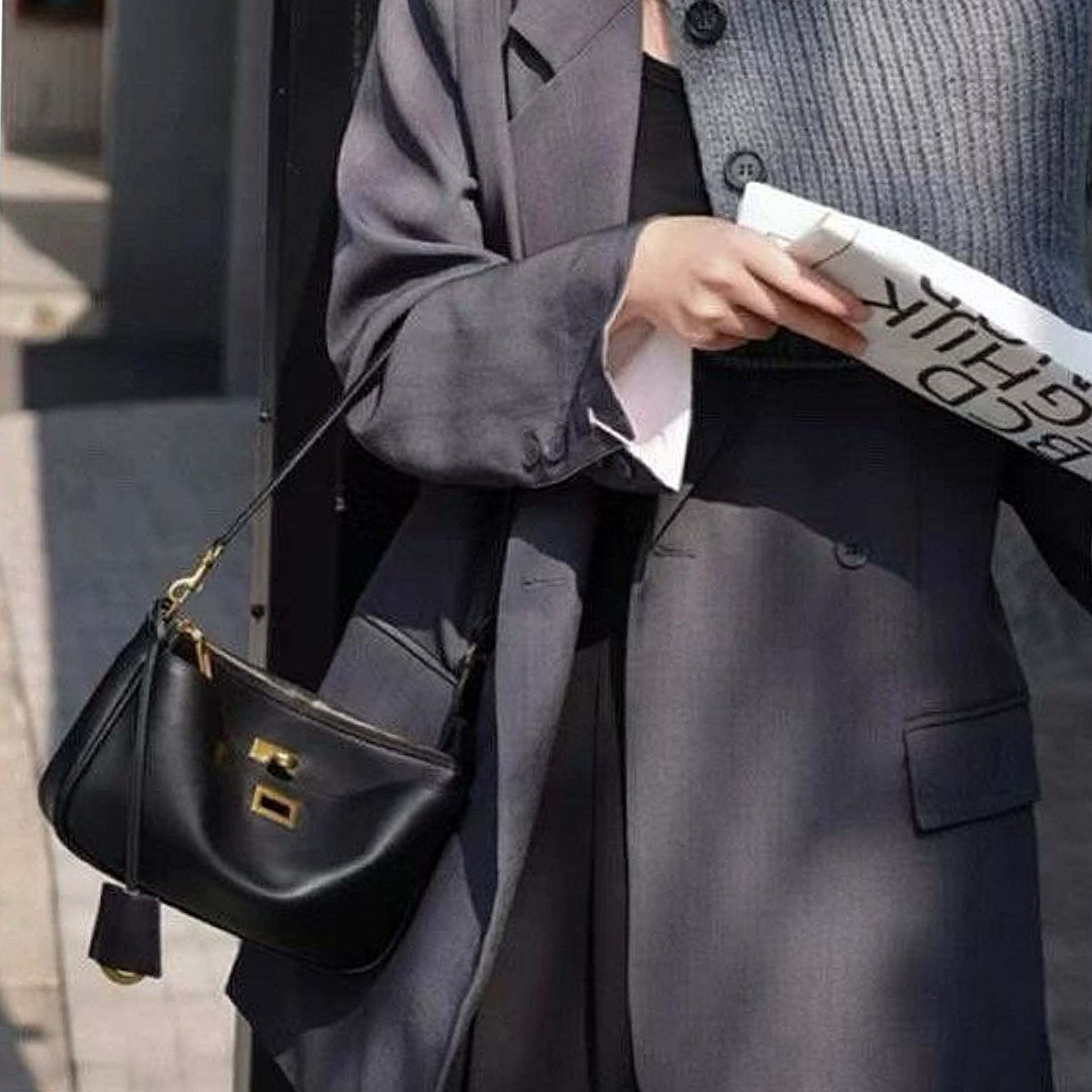 洗練されたデザインが魅力のこのショルダーバッグは、デイリースタイルを格上げするスタイリッシュなアイテムです。肩にかけての持ち運びが容易で、普段使いからお出かけまで幅広く対応可能です。さらに、ゴールドとシルバーメタルのアクセントが高級感を引き立て、シンプルながらも洗練された印象を与えます。内部には整理整頓がしやすいポケットも充実しており、使い勝手も抜群です。