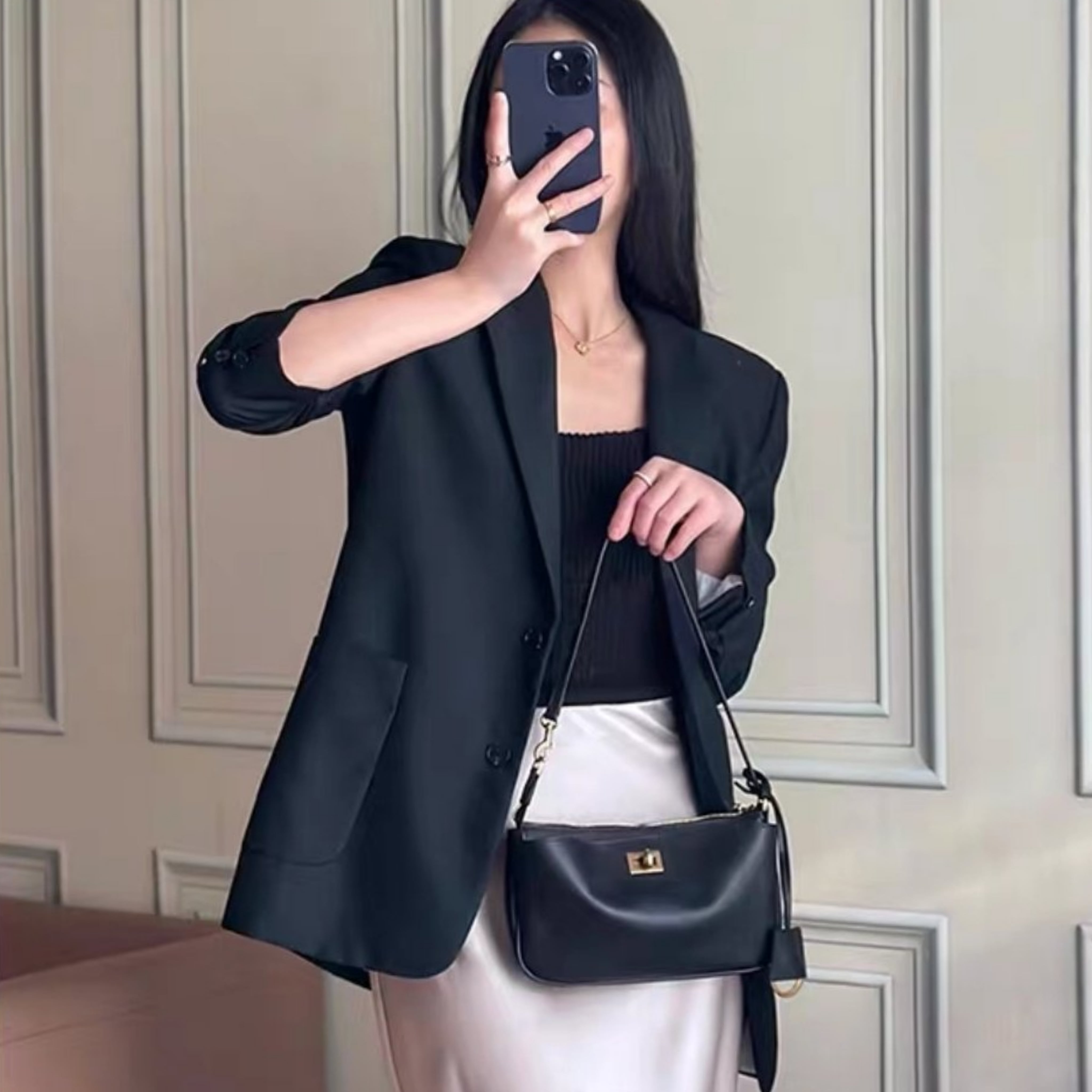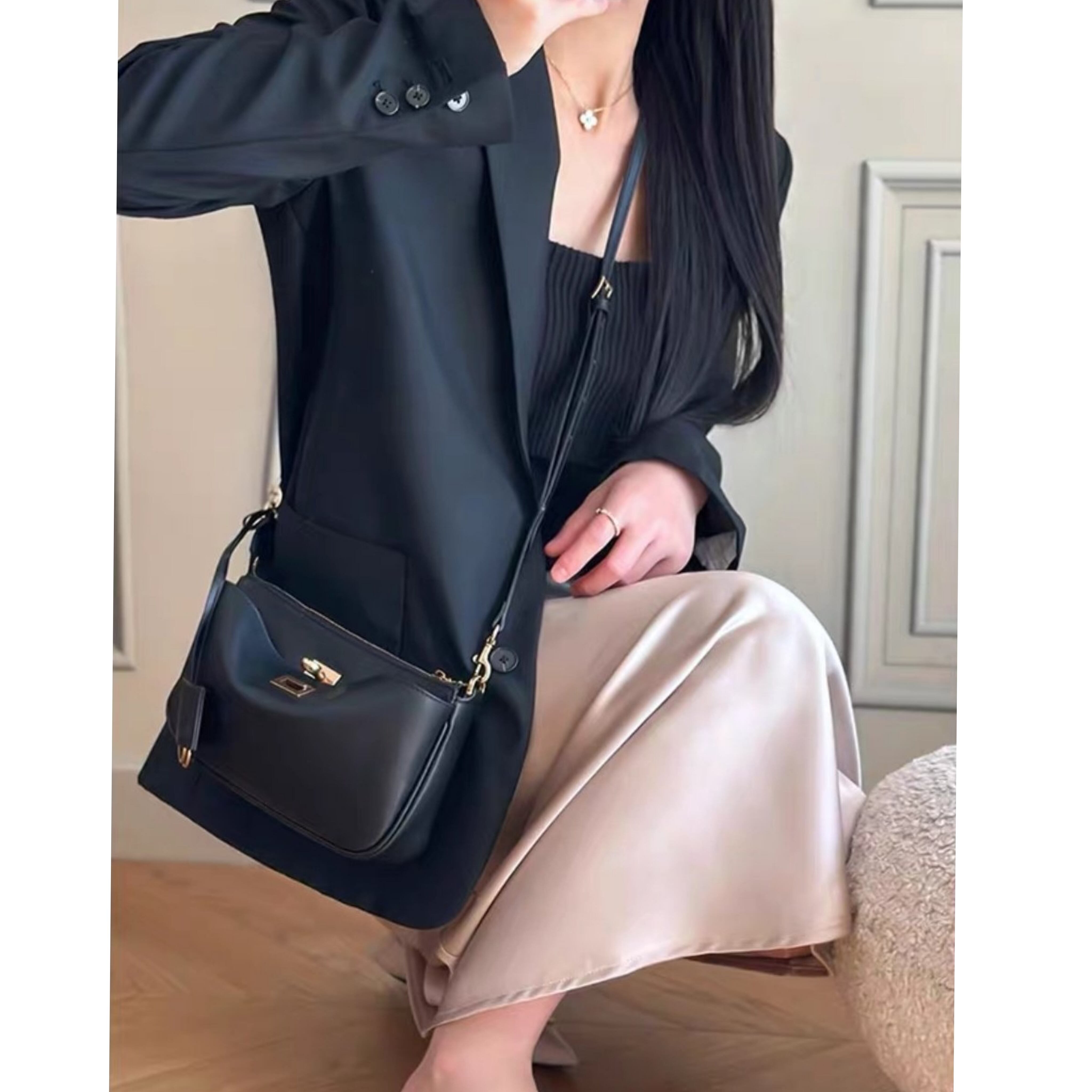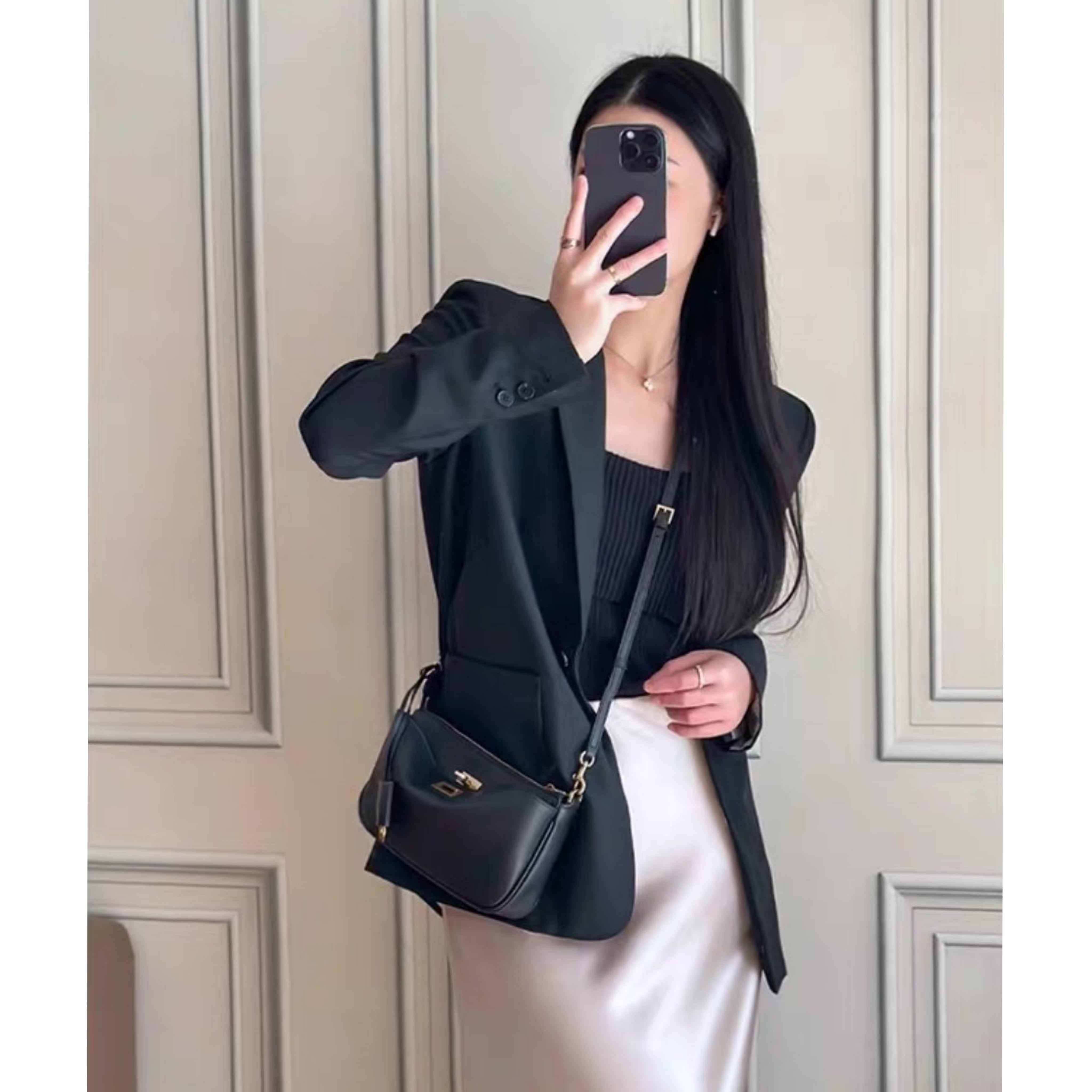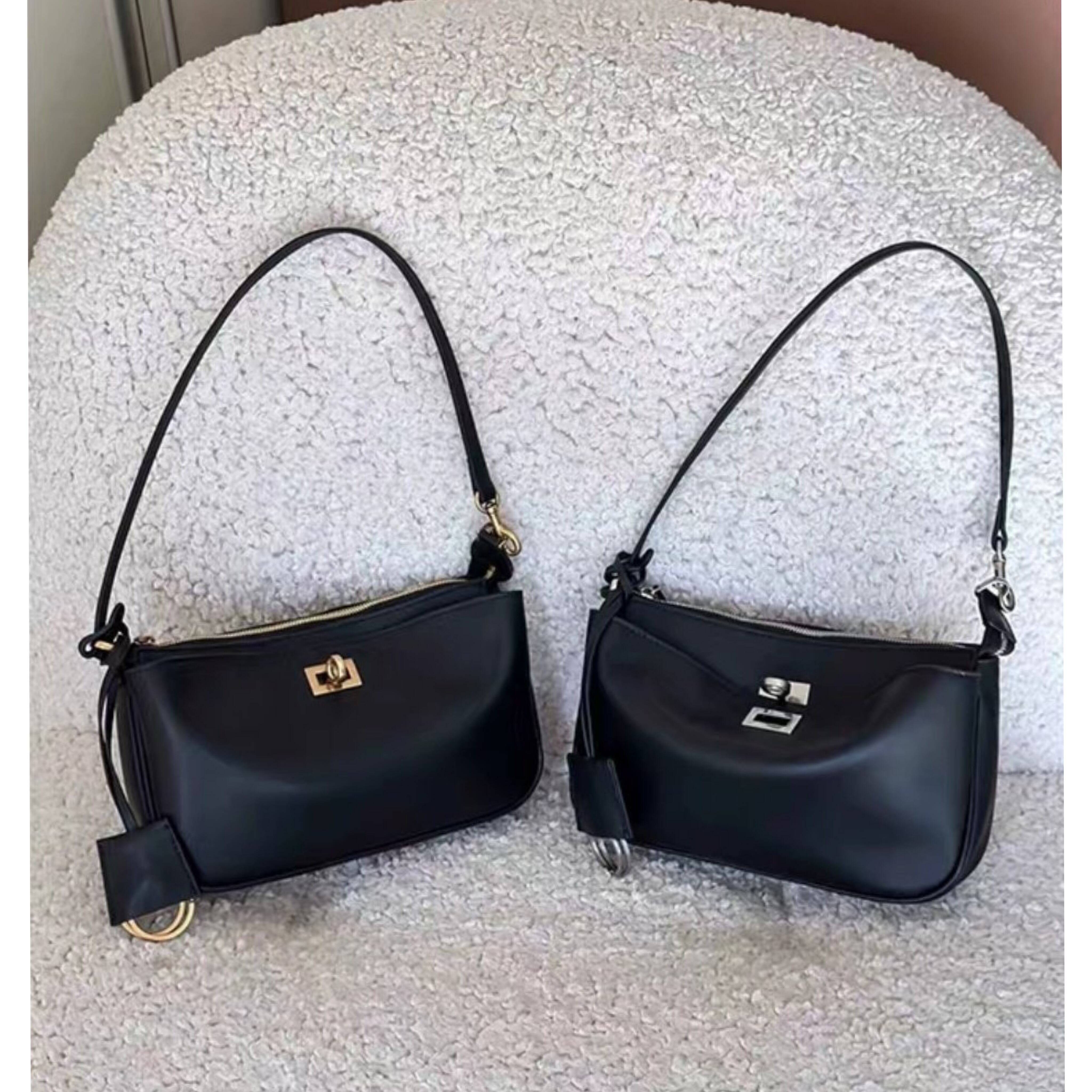 洗練されたデザインが魅力のこのショルダーバッグは、デイリースタイルを格上げするスタイリッシュなアイテムです。肩にかけての持ち運びが容易で、普段使いからお出かけまで幅広く対応可能です。さらに、ゴールドとシルバーメタルのアクセントが高級感を引き立て、シンプルながらも洗練された印象を与えます。内部には整理整頓がしやすいポケットも充実しており、使い勝手も抜群です。