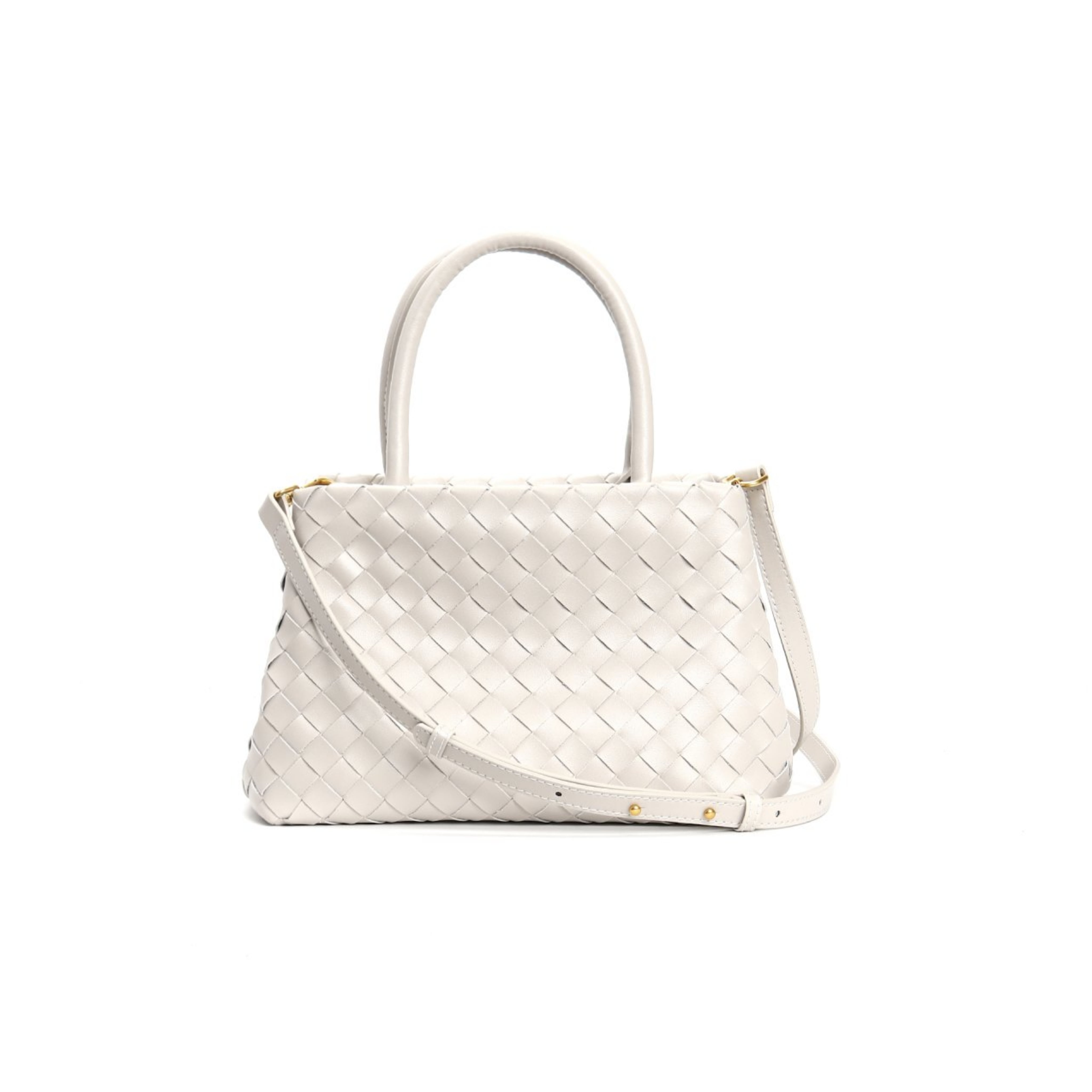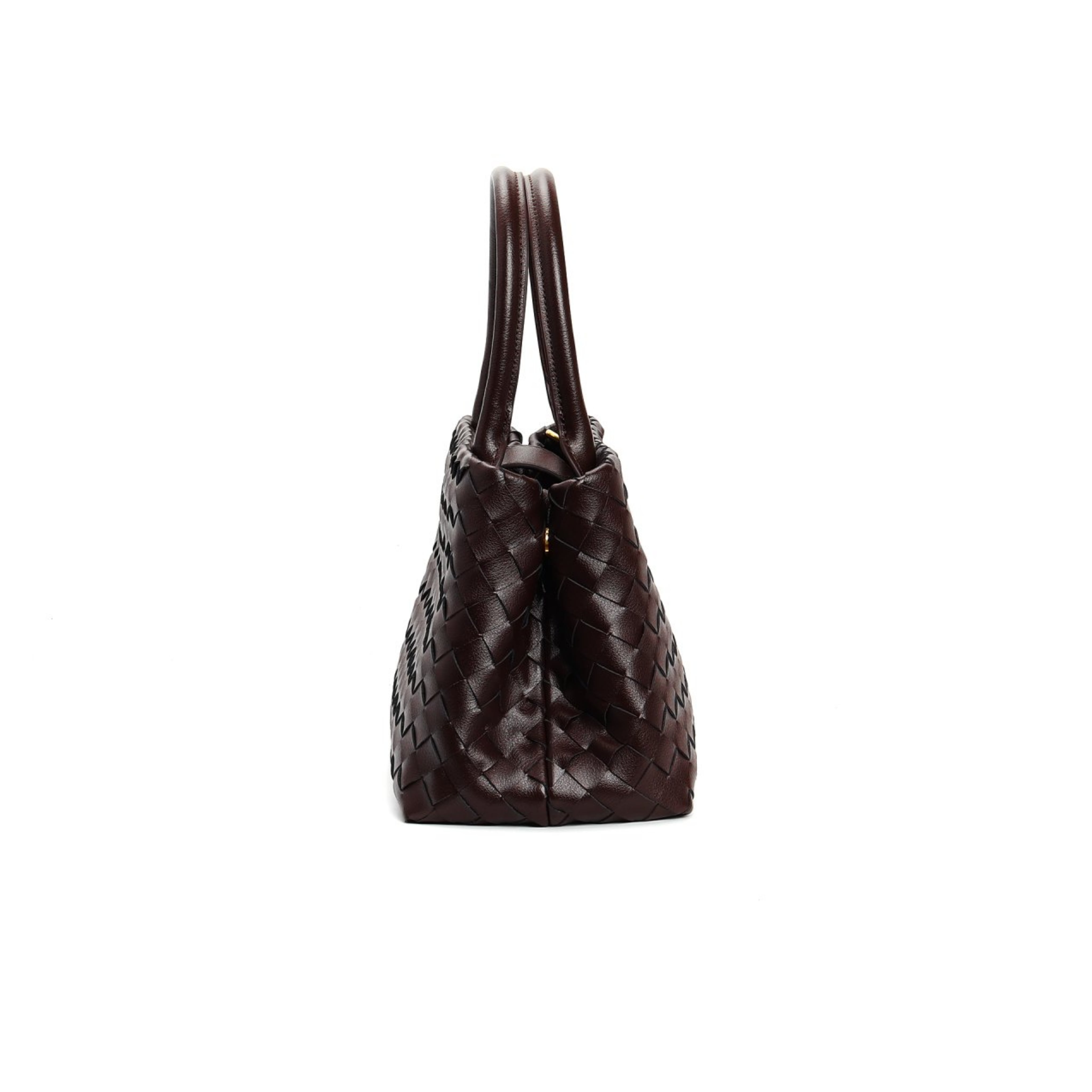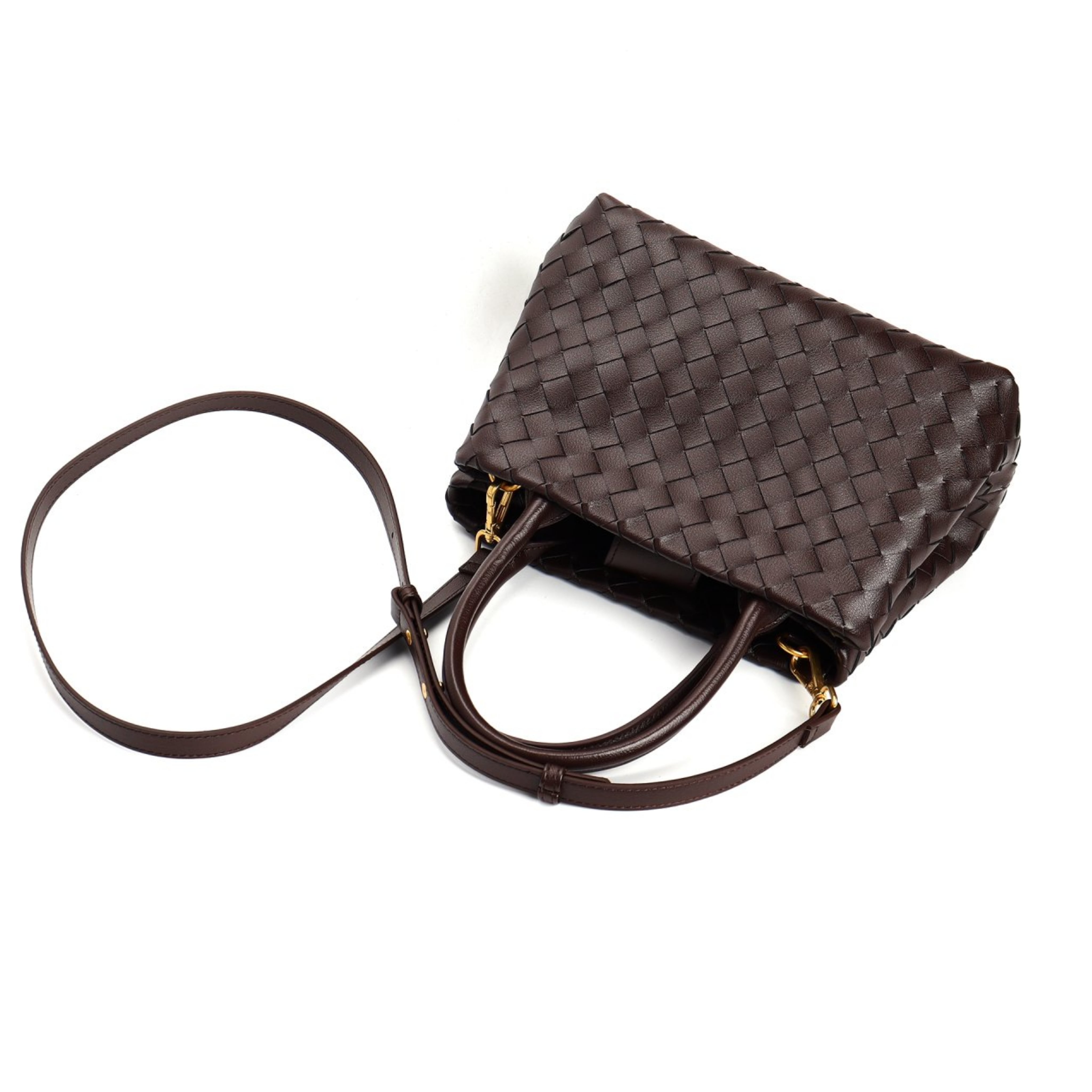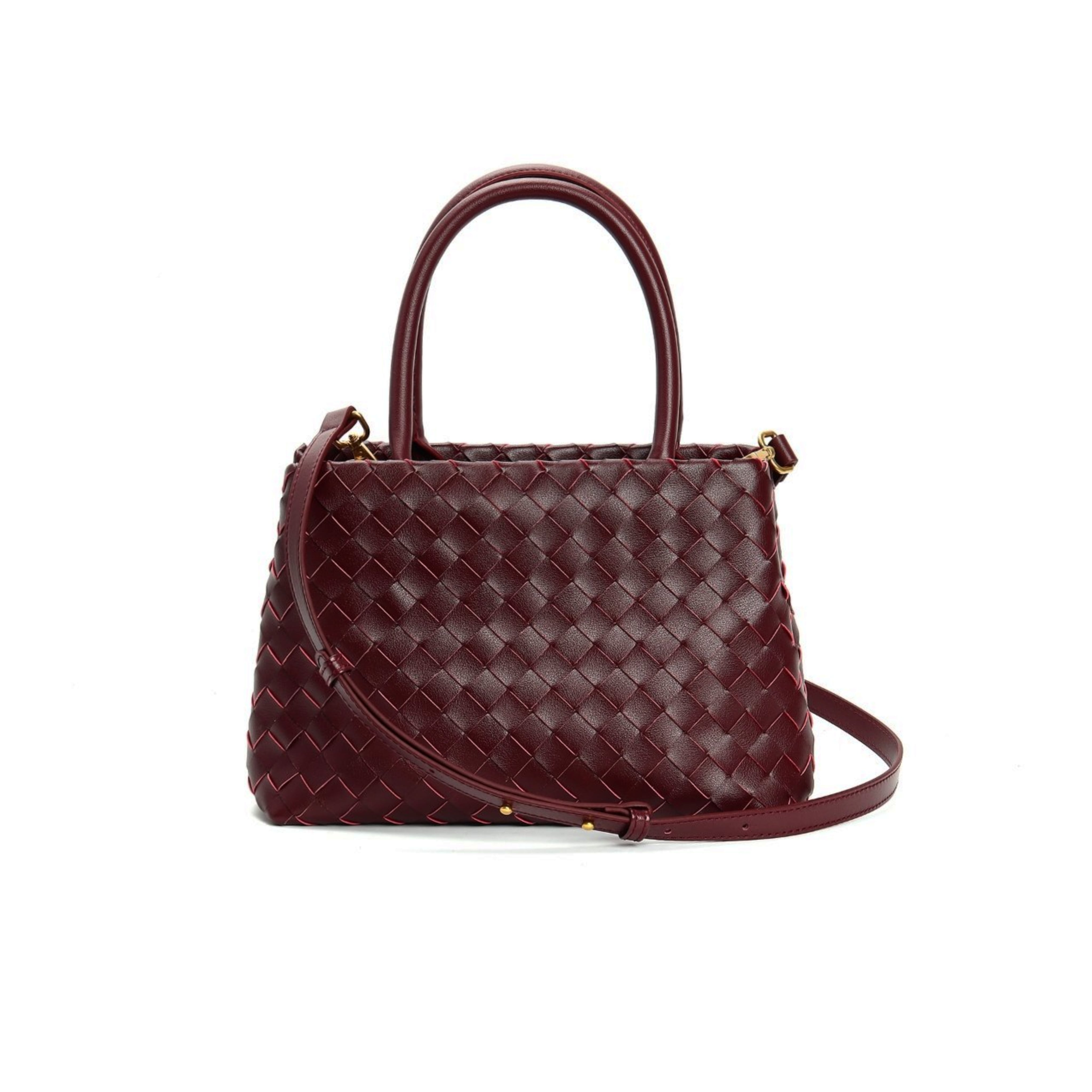 お色はブラック、キャメル、ホワイト、カーキー、ダークブラウン、ワインの6タイプです。サイズはW25/H16/D12cmで、牛革を使用したメッシュ仕様が特徴です。コンパクトサイズながらも可愛らしさを放ち、どんなコーディネートにもマッチします。