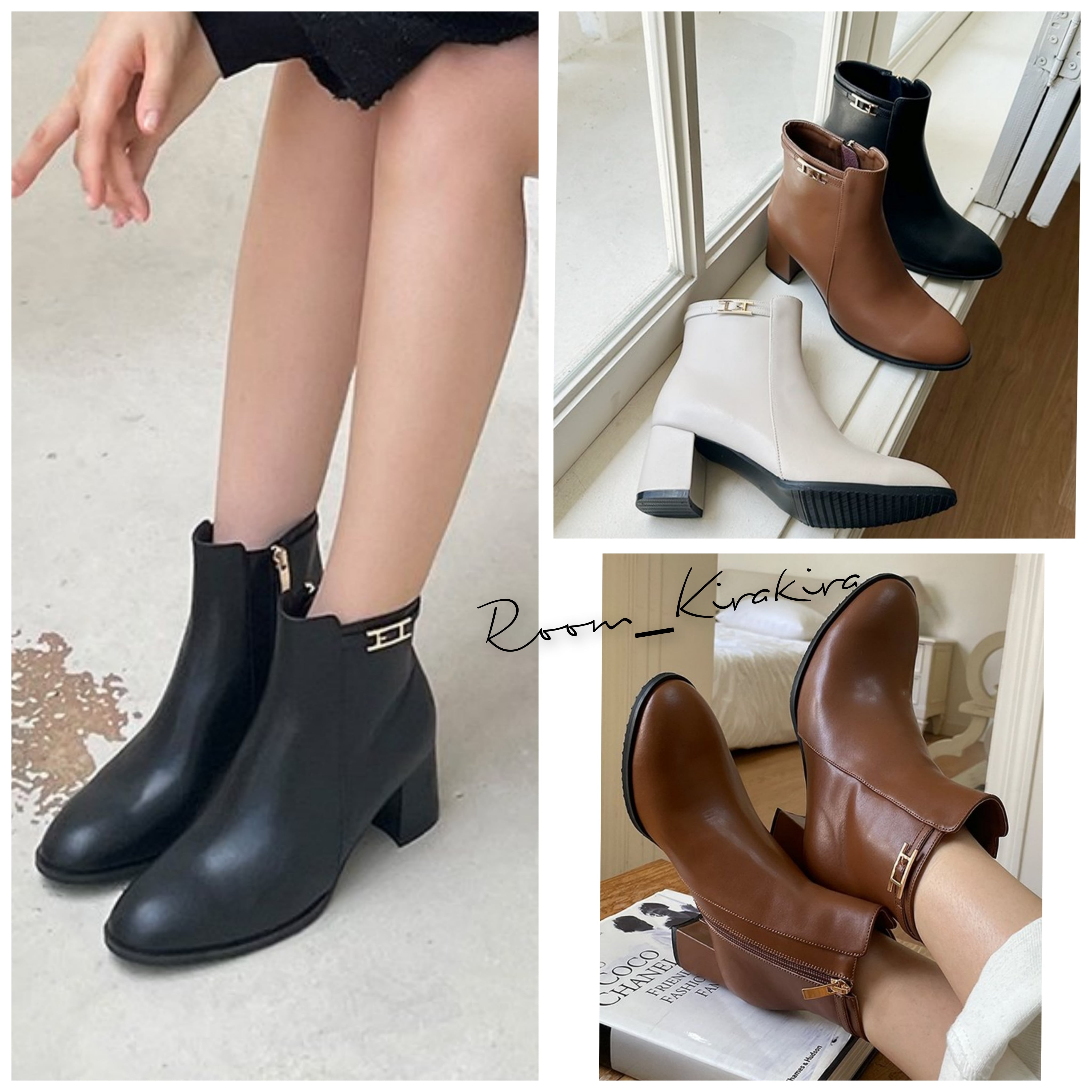 お色はブラック、キャメル、アイボリーの3タイプです。サイズは23.0〜25.0cmで、5cmのヒールが魅力です。上質な牛革を使用した高級感あふれるデザインが、日常のスタイルを一層引き立てます。