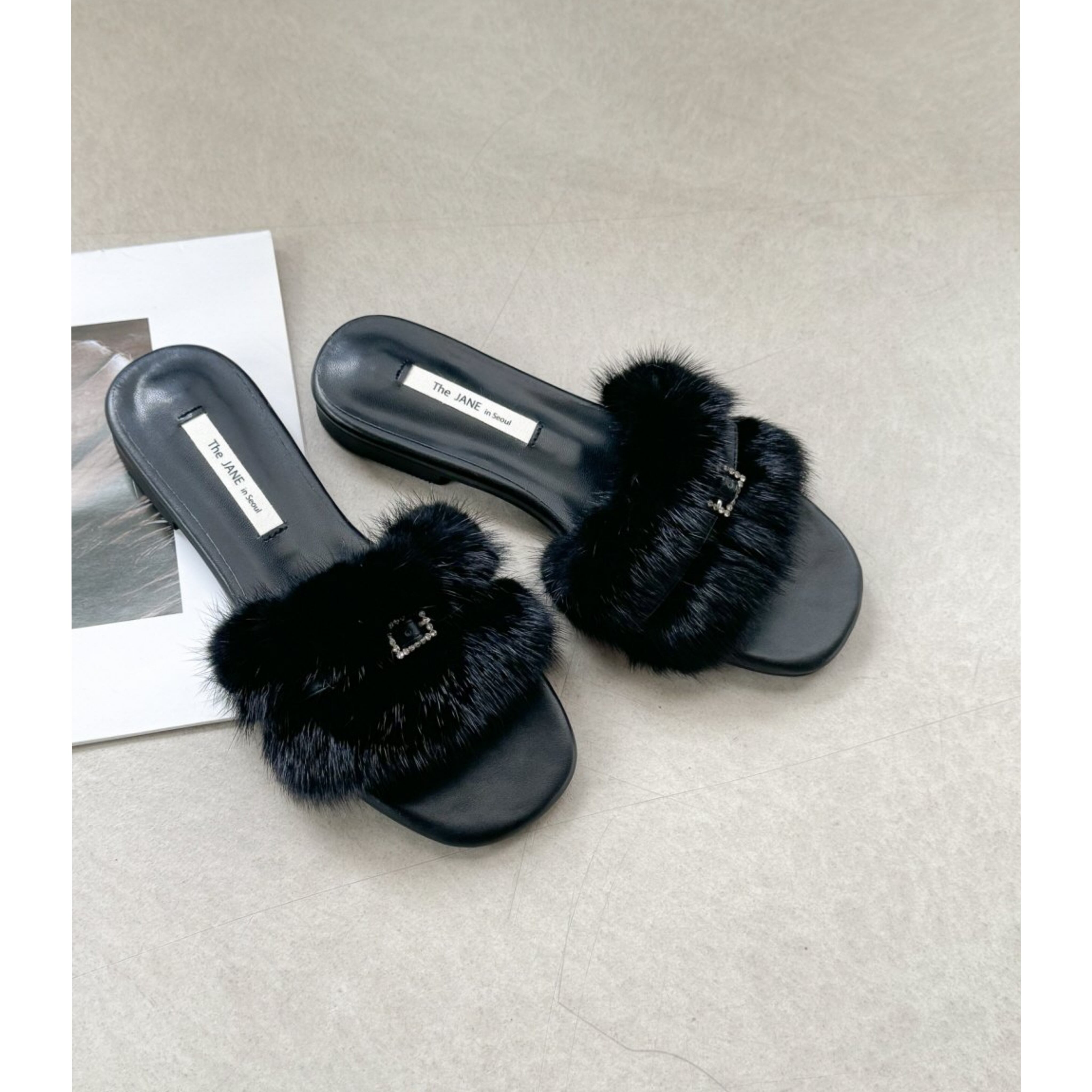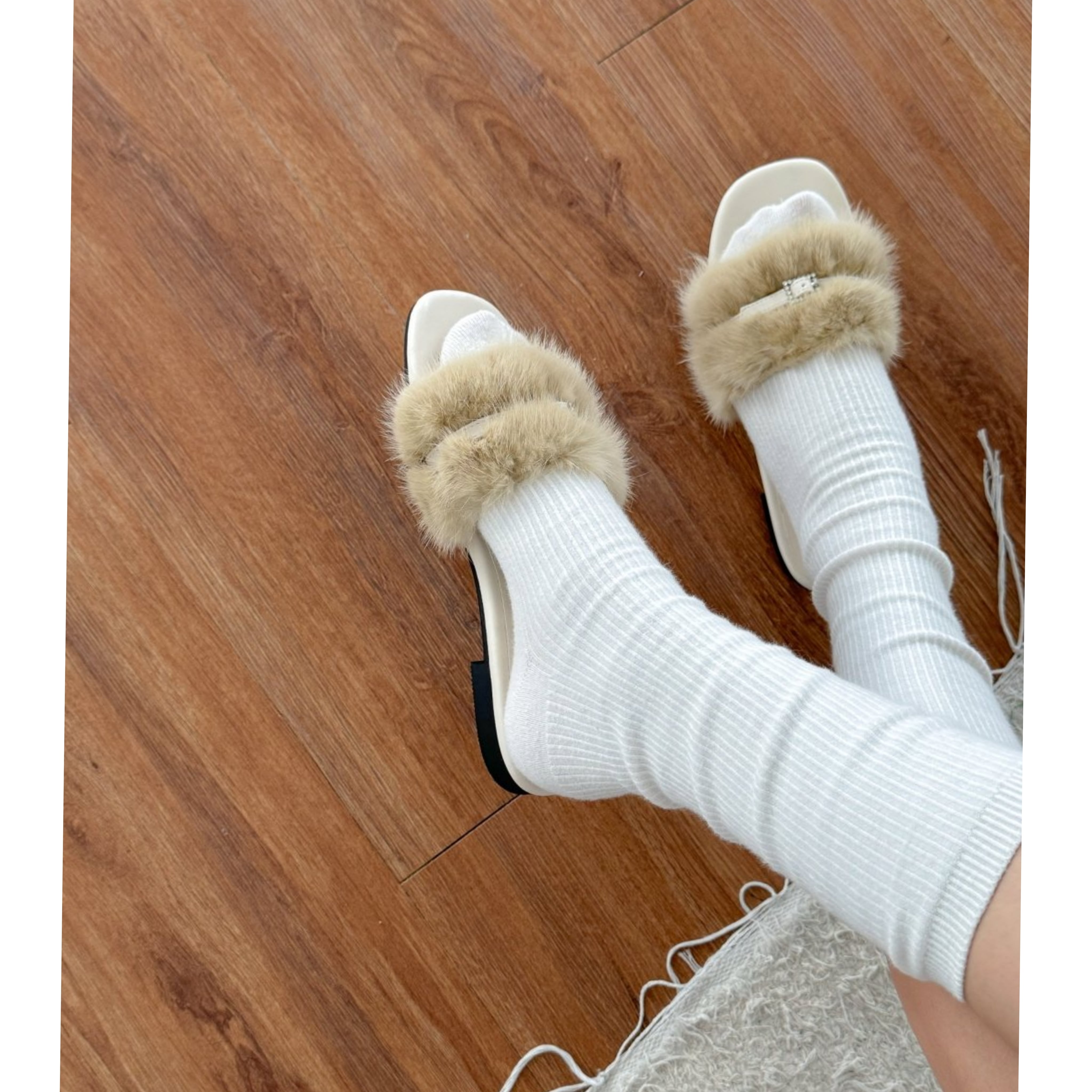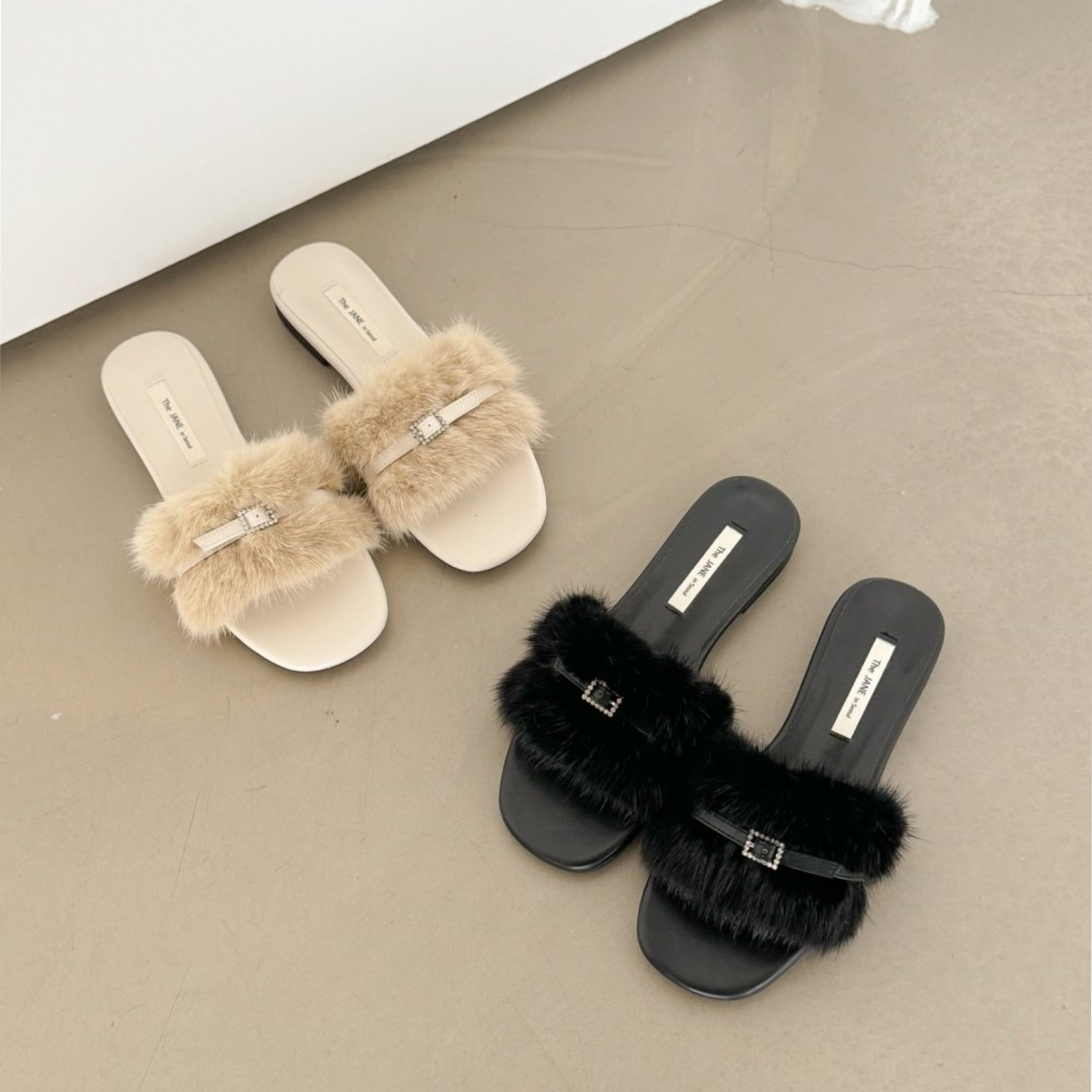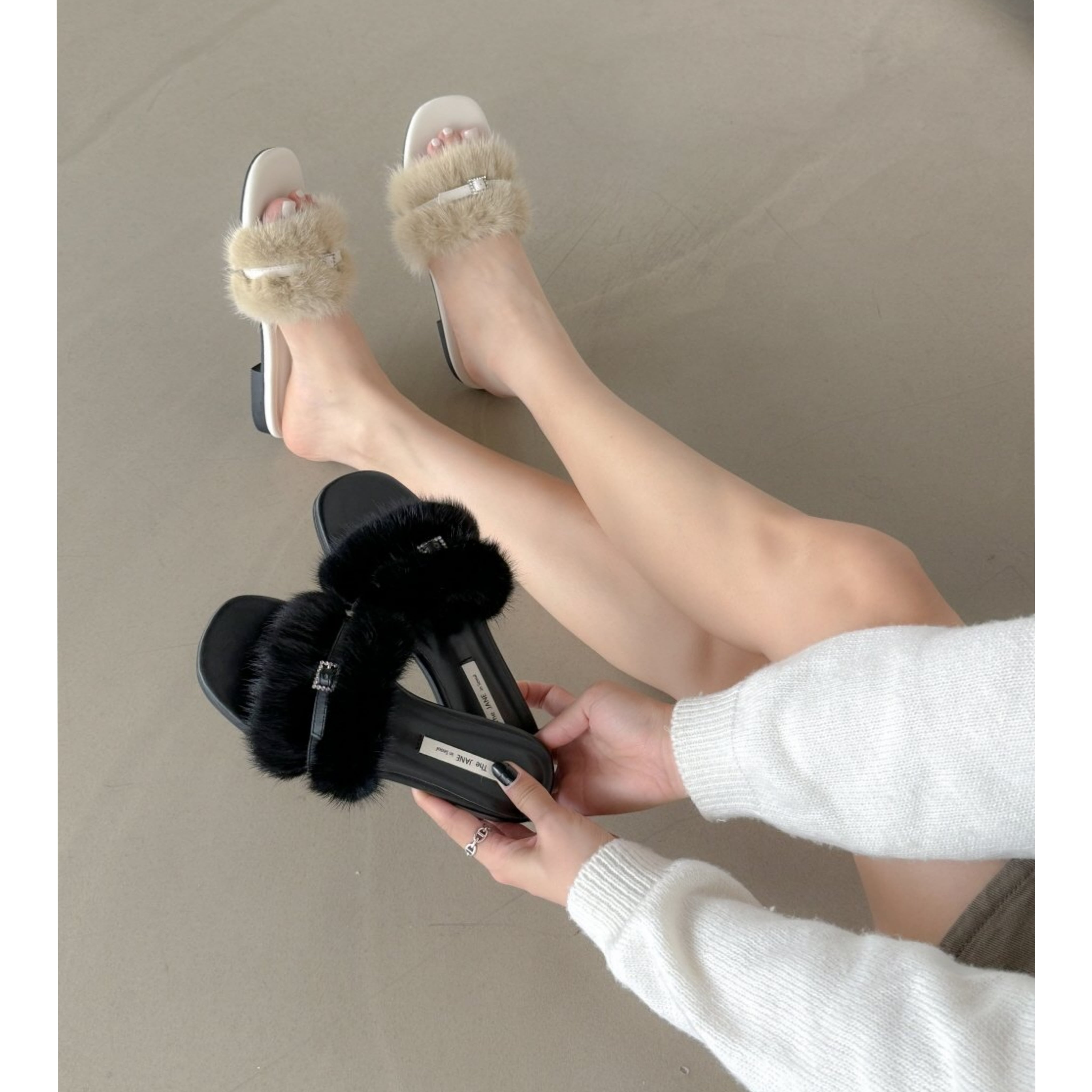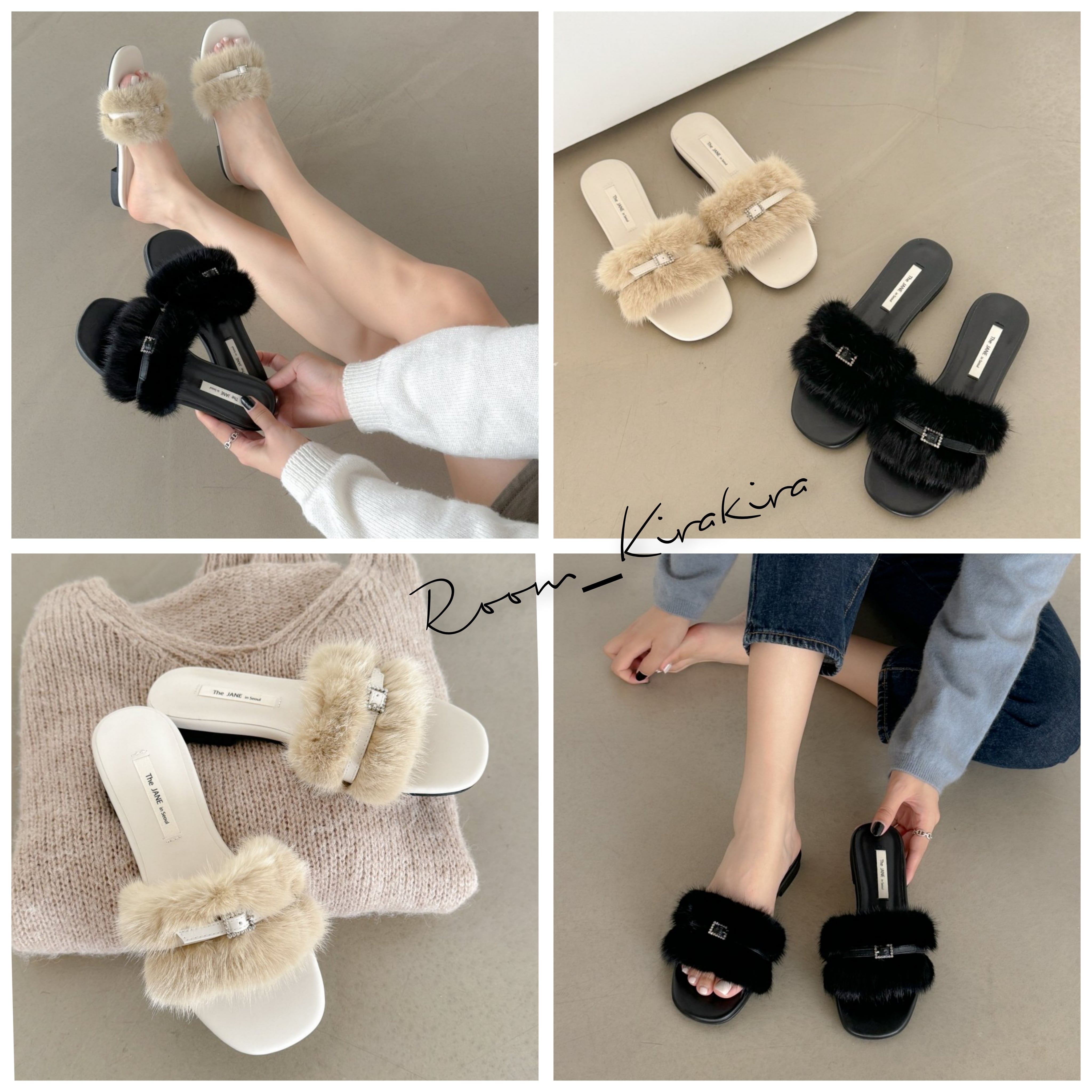お色は高級感漂うブラックとベージュの2タイプ、サイズは22.5〜25.0cmの展開です。リアルミンクを使用したベルトデザインが特徴で、華やかさをプラスします。