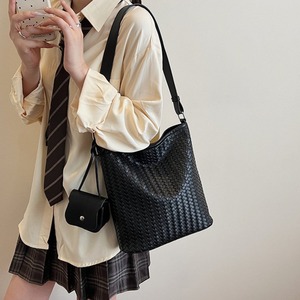 お色は、シックなブラックと温かみのあるブラウンの2タイプをご用意しています。サイズはW26/H28cmで、日常使いにぴったりなサイズ感です。合革製のハンドメイド感溢れるメッシュ仕様が魅力で、スタイリッシュさを引き立てます。肩にかけるショルダータイプは、持ち運びも楽々です。