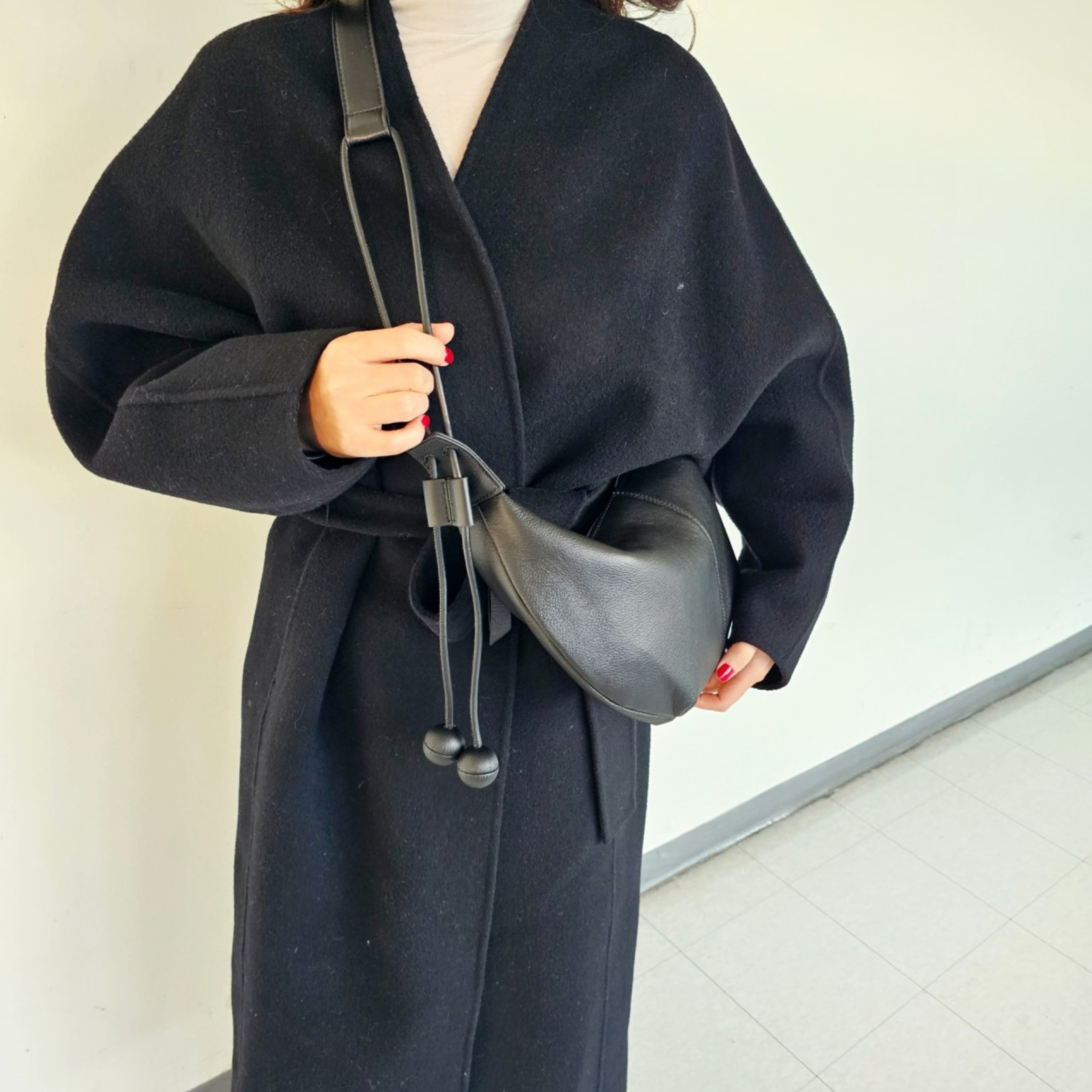 お色は、シックなブラックと温かみのあるブラウンの2タイプをご用意しています。サイズはW28/H15/D7cmで、日常使いにも特別なお出かけにもぴったりな絶妙なサイズ感です。柔らかいラムスキンを使用しており、上質さときめ細やかさを感じさせます。