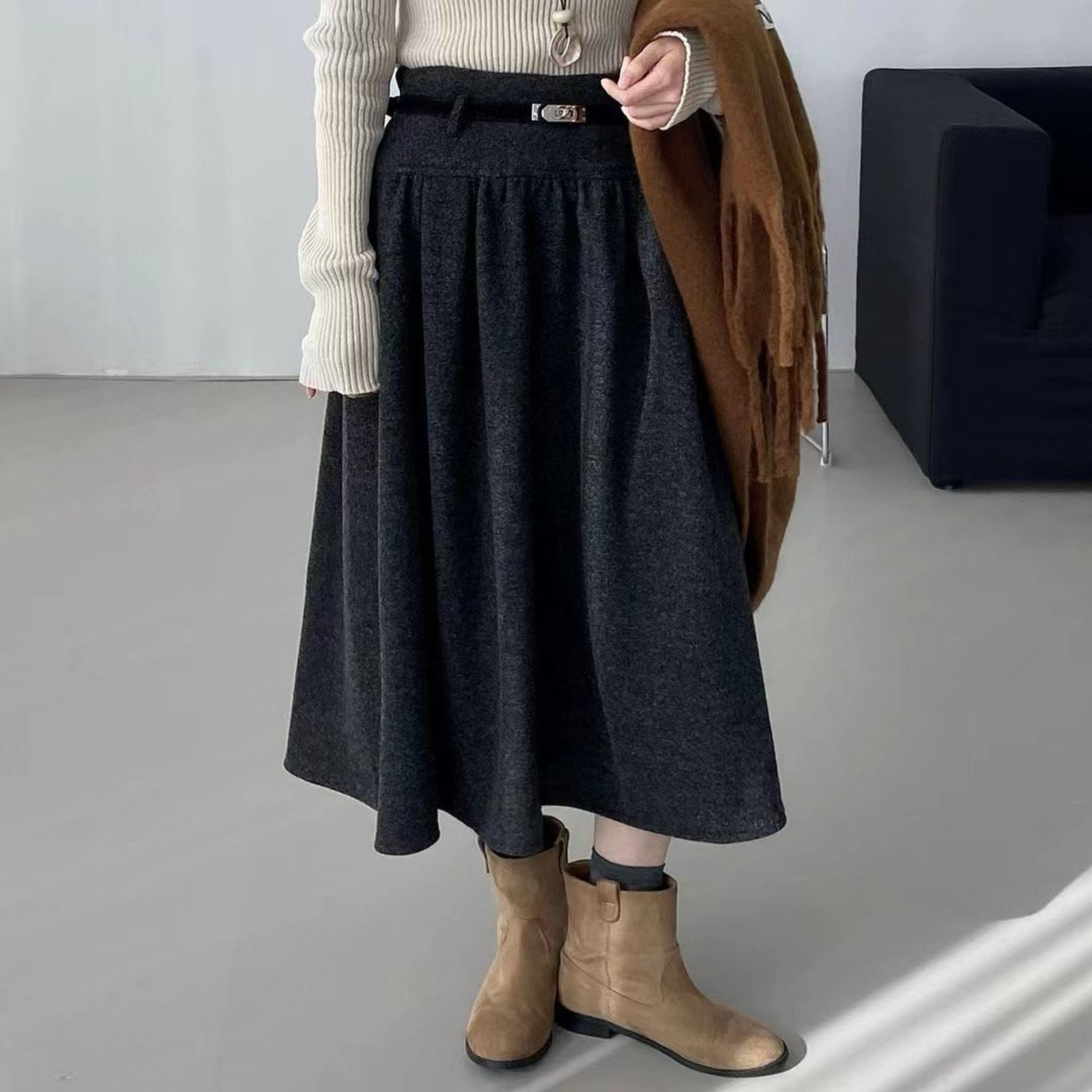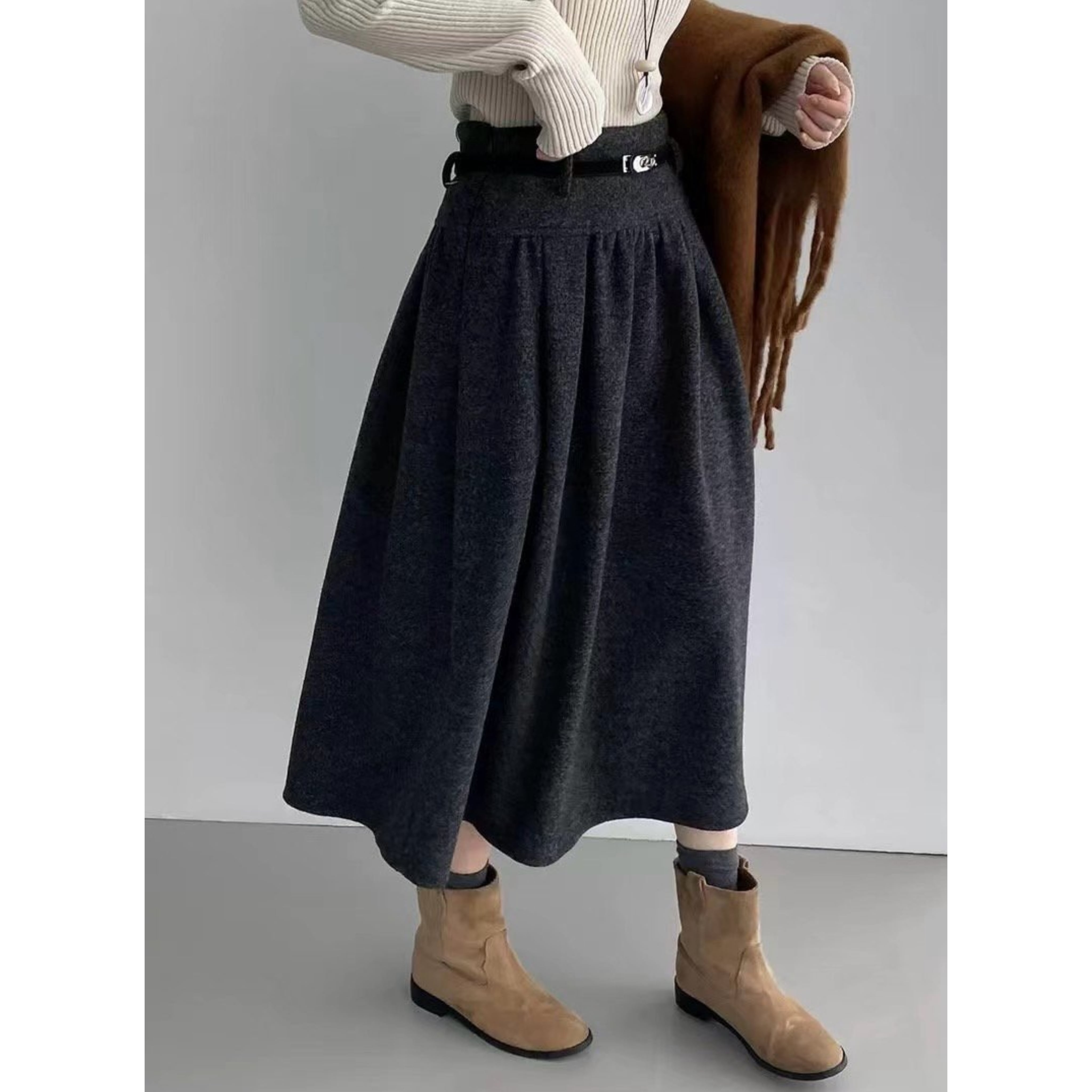 高級感と実用性を兼ね備えたベル付きアンダーフレアースカートは、あなたのファッションを一層引き立てる逸品です!