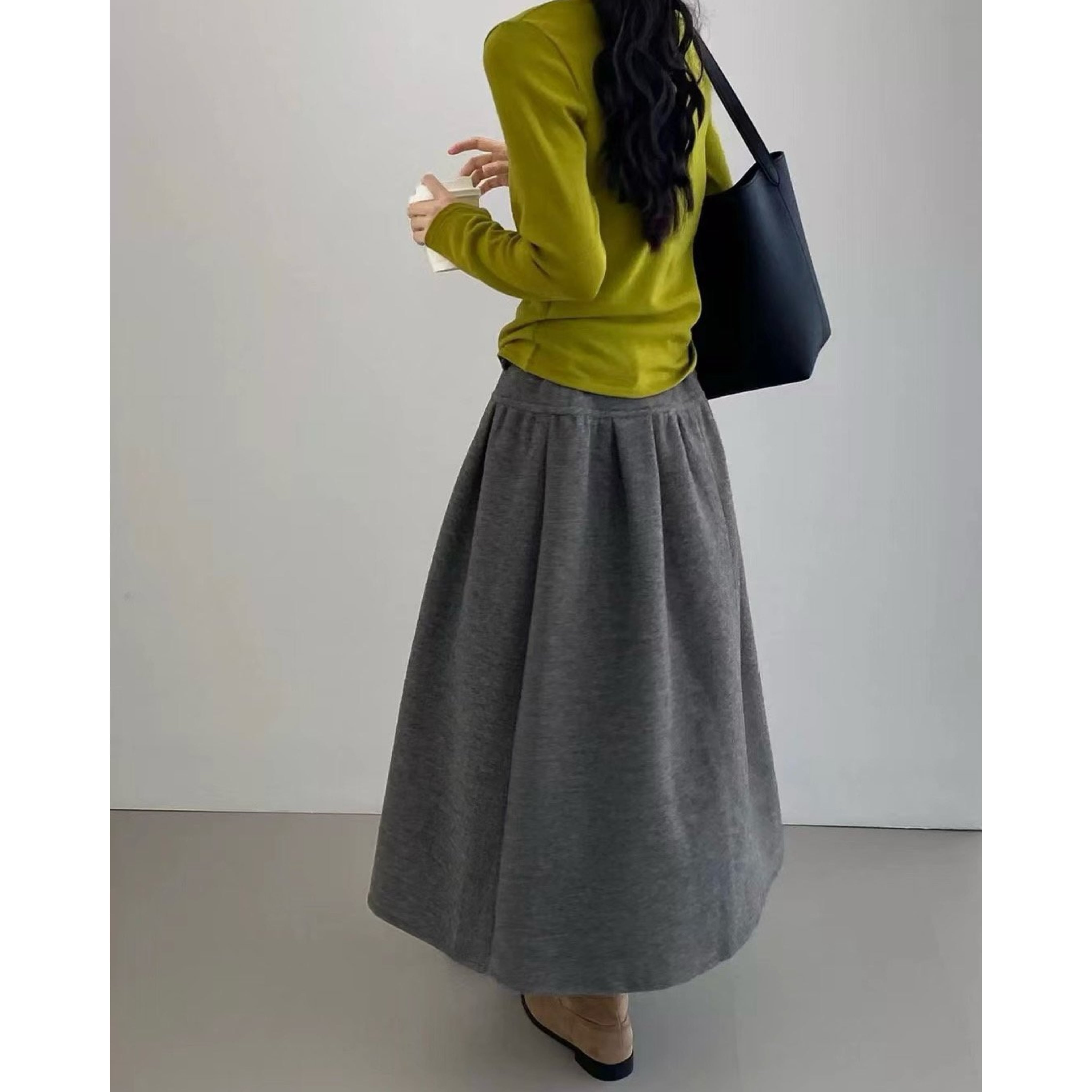 お色は、シックなブラックと洗練されたグレーの2タイプをご用意しています。サイズはS、M、Lの3種類で、あなたにぴったりのフィット感を実現します。ポリエステルとウールの混合素材がもたらす柔らかな肌触りと、活動しやすいアンダーフレアータイプのデザインが、快適な着用感を提供します。
