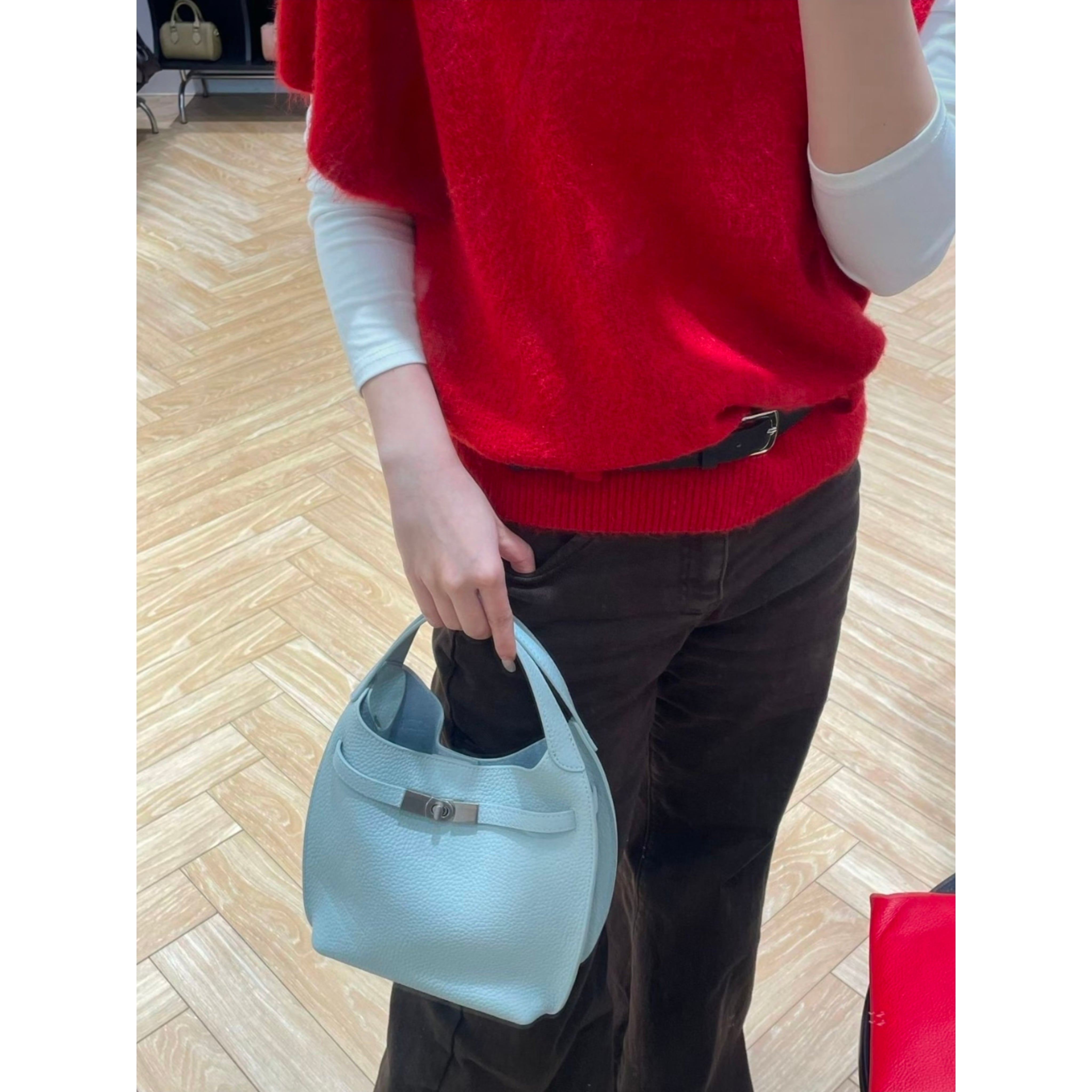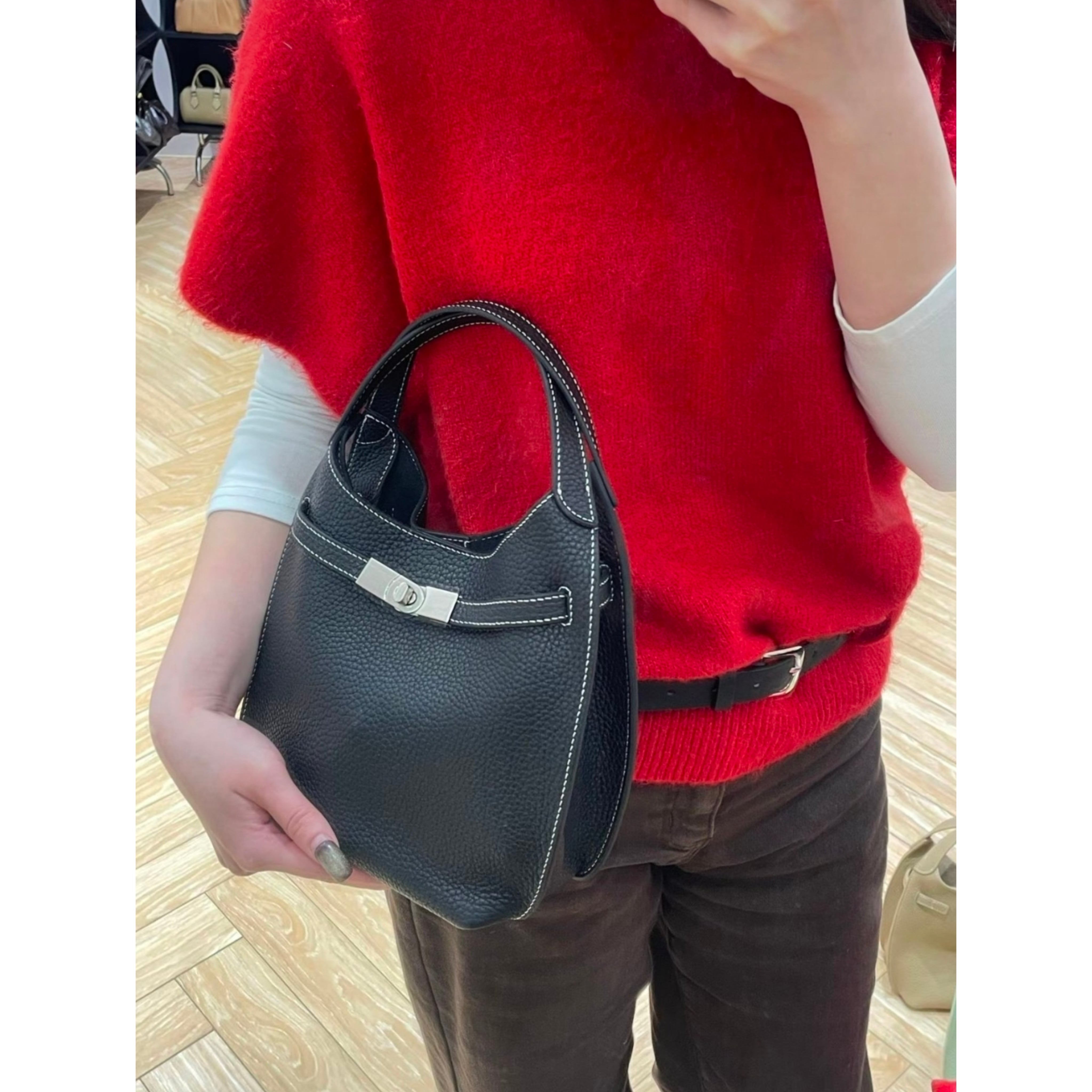 ワンハンドルで持ち運びが楽々なデザインは、ちょっとしたお出かけやカジュアルなスタイルにもフィットします。さらに、バックルデザインがお洒落なアクセントとなり、あなたのコーディネートを引き立てること間違いなしです。この牛革製クロージングクロスバッグは、あなたの日常に華やかさと機能性をプラスする素敵なアイテムです!