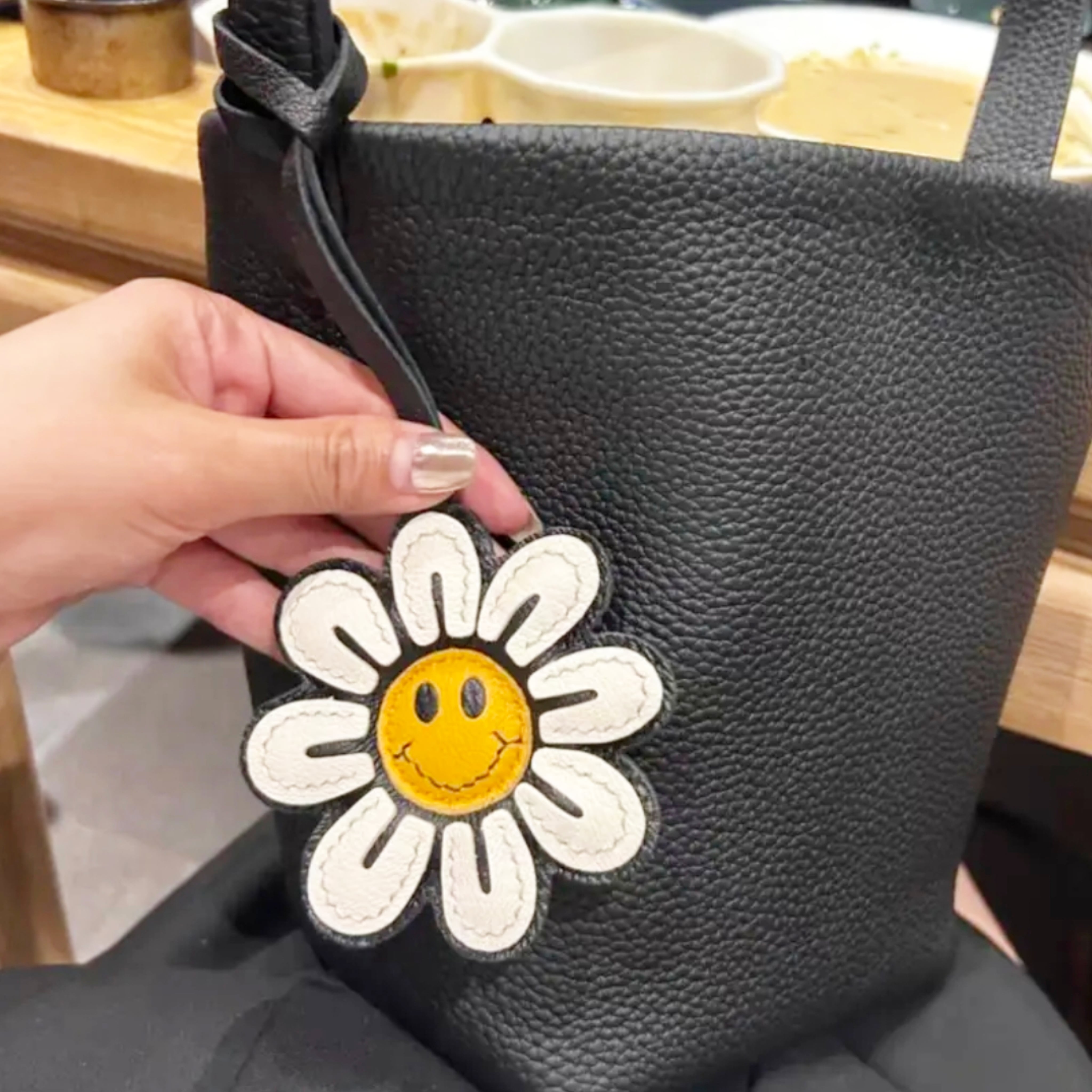 お色は、華やかなマルチカラーとシックなホワイトの2タイプをご用意。素材には合革を使用し、サイズ感はどんなバッグにもぴったりフィットします。スマイルのフラワーをあしらったデザインは、一瞬であなたのスタイルに可愛らしさをプラスしてくれます。