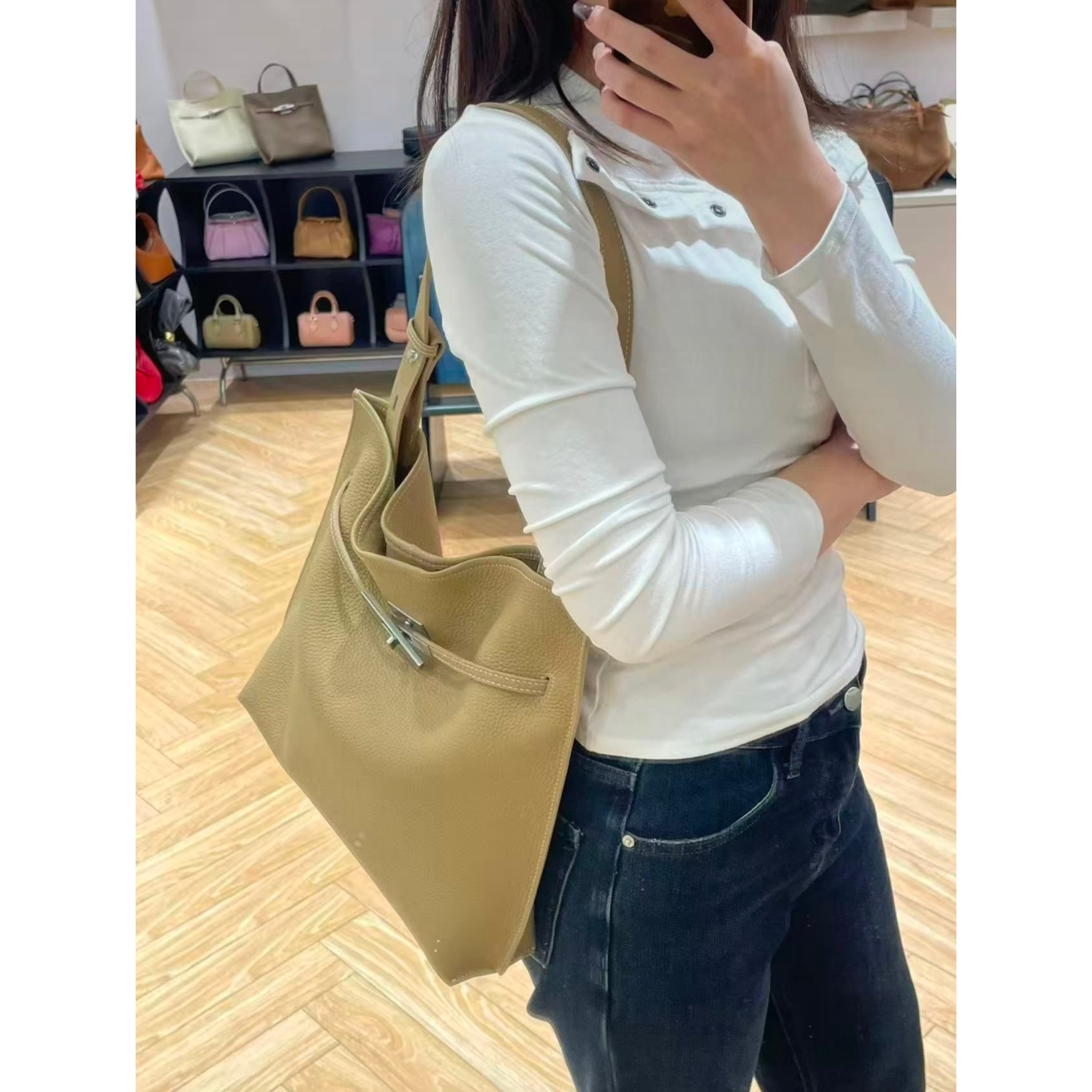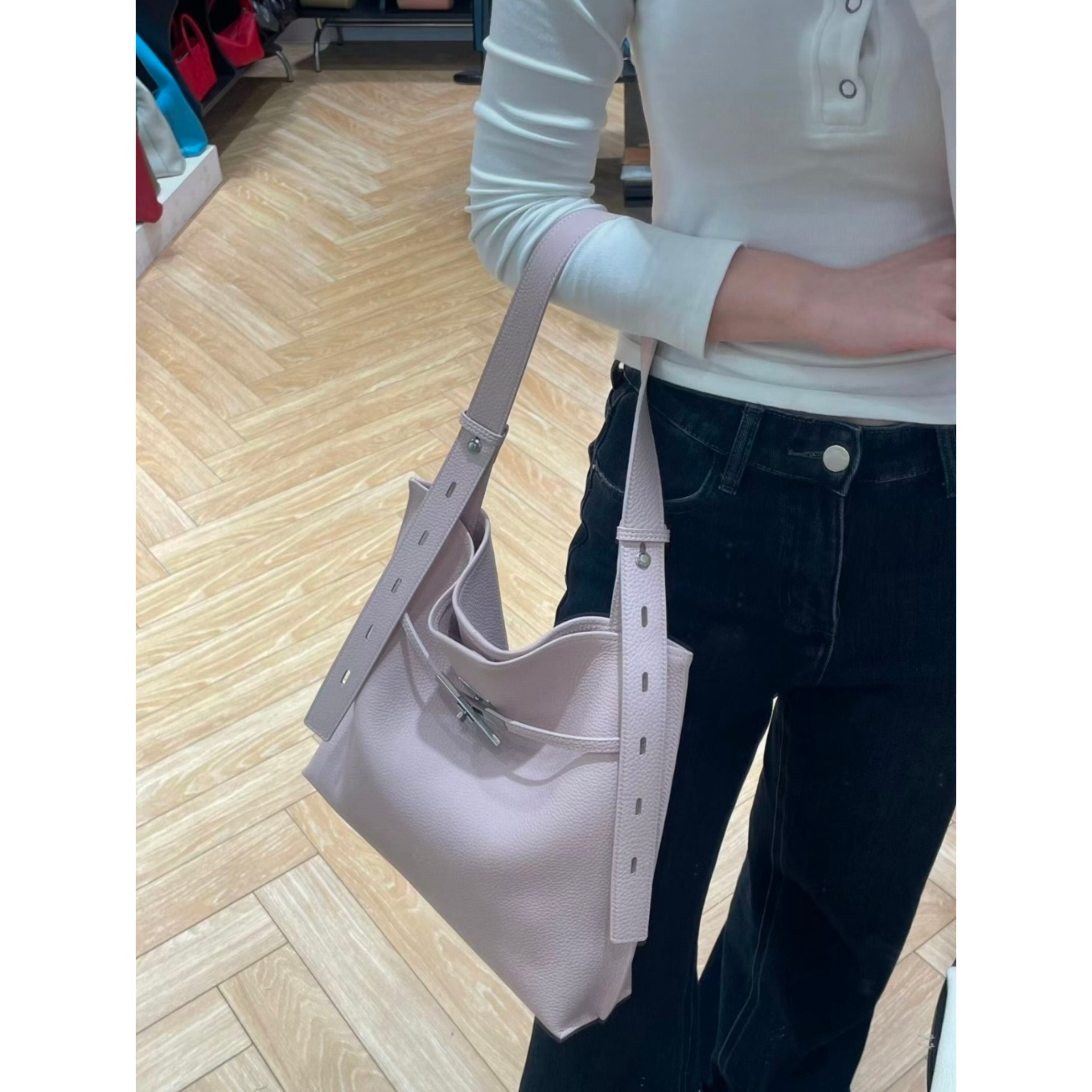 この牛革製ノマバックルショルダーバッグは、スレンダーなバックルデザインが印象的で、スタイリッシュな雰囲気を演出します。ショルダーの長さは調整可能で、デイリーなお出かけや特別なシーンにおいても、どんなスタイルにもマッチするアイテムです!牛革製ノマバックルショルダーバッグは、あなたのファッションを引き立てる素敵なバッグです!