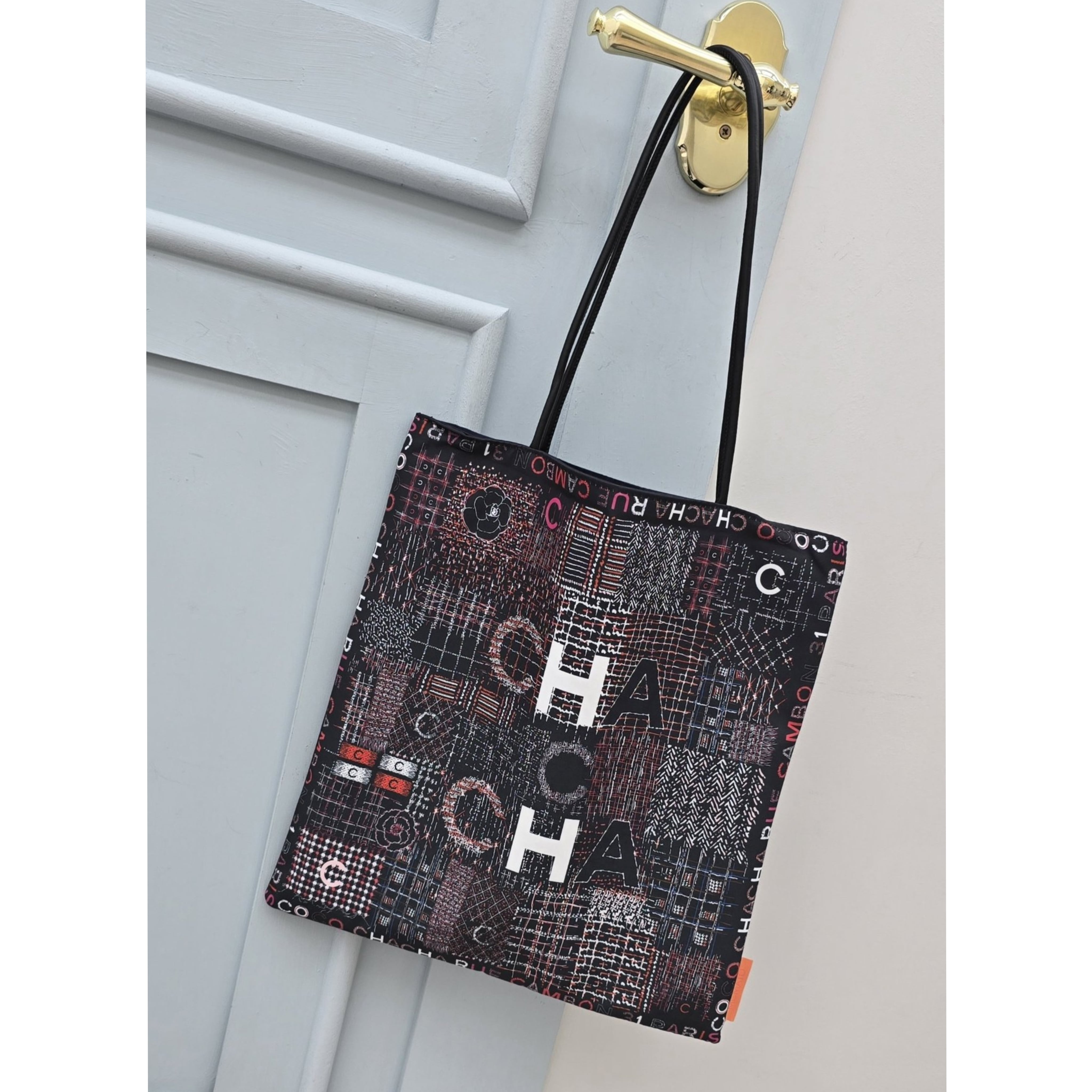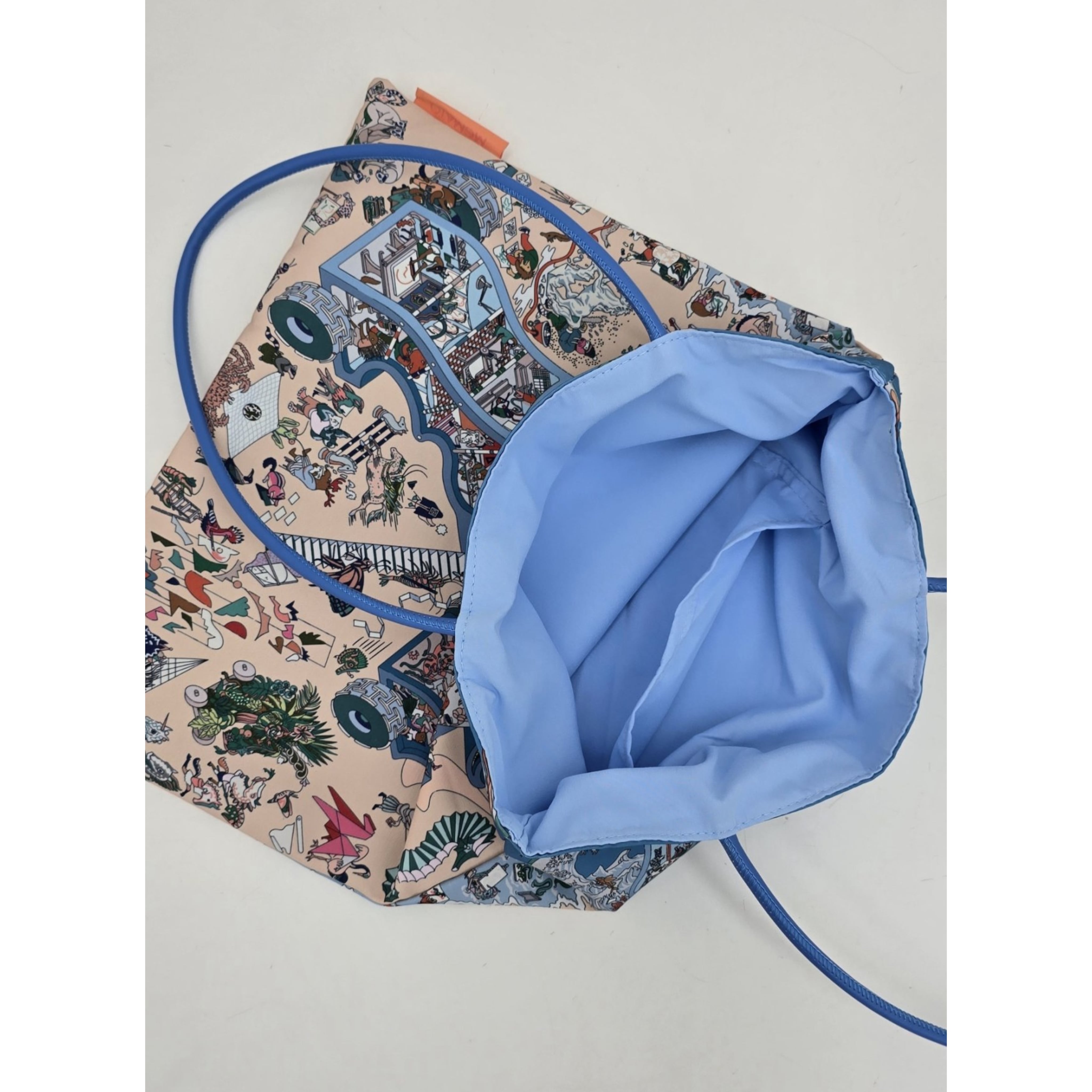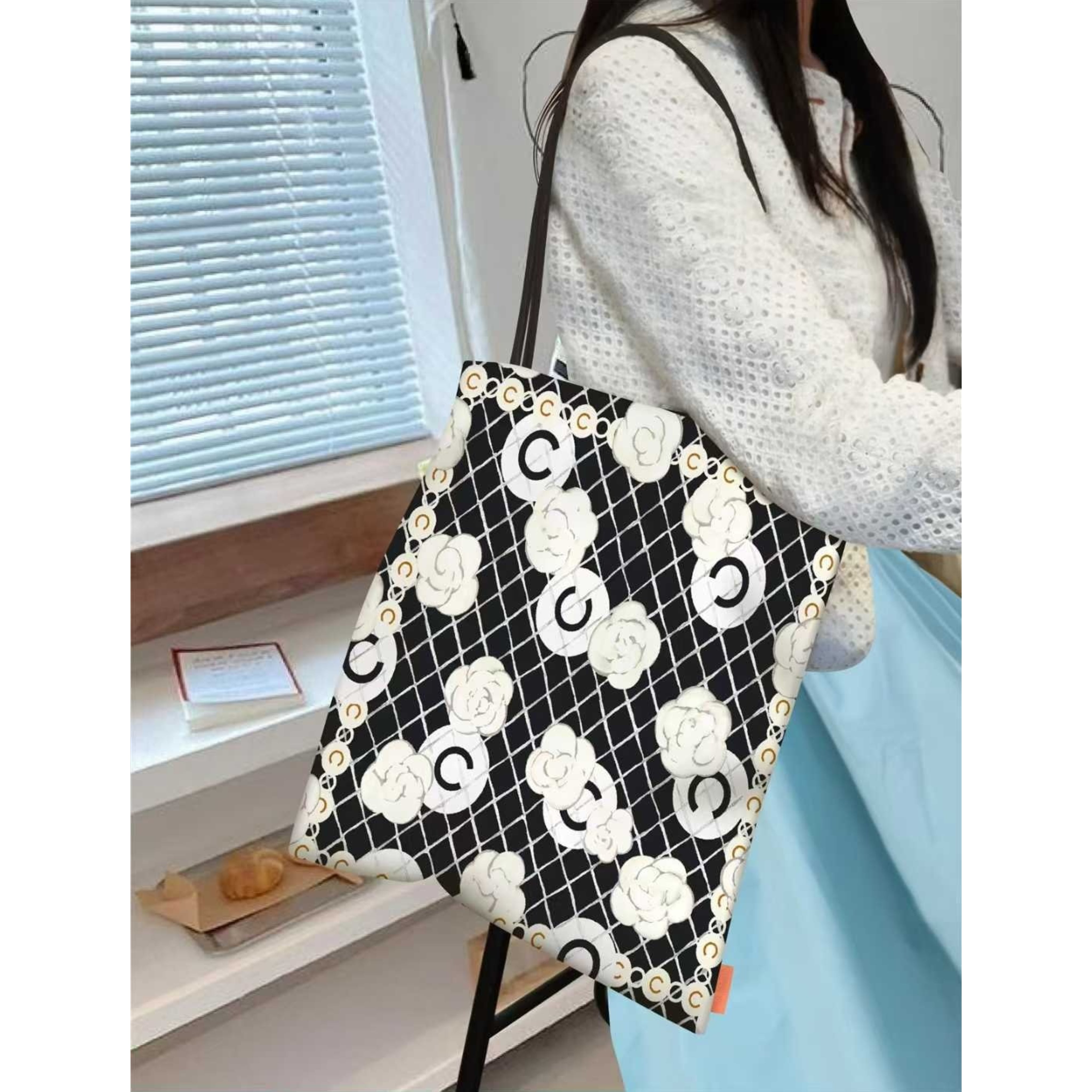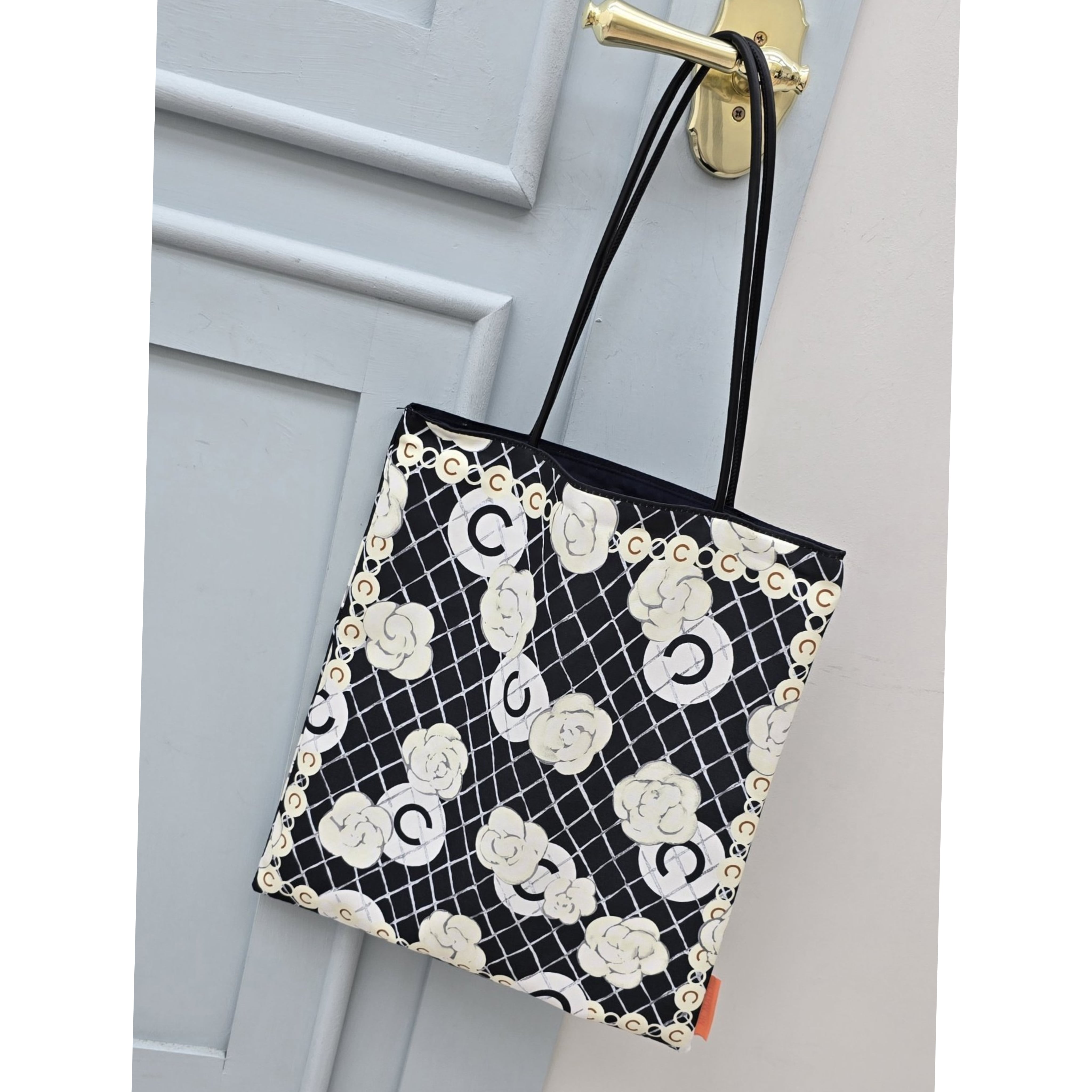 このスカーフ柄ショッパーバッグは、日常使いはもちろん、ちょっとしたお出かけにもぴったりのアイテムです。折り畳んで携帯できるため、使いたい時にさっと取り出せる便利さも魅力です。