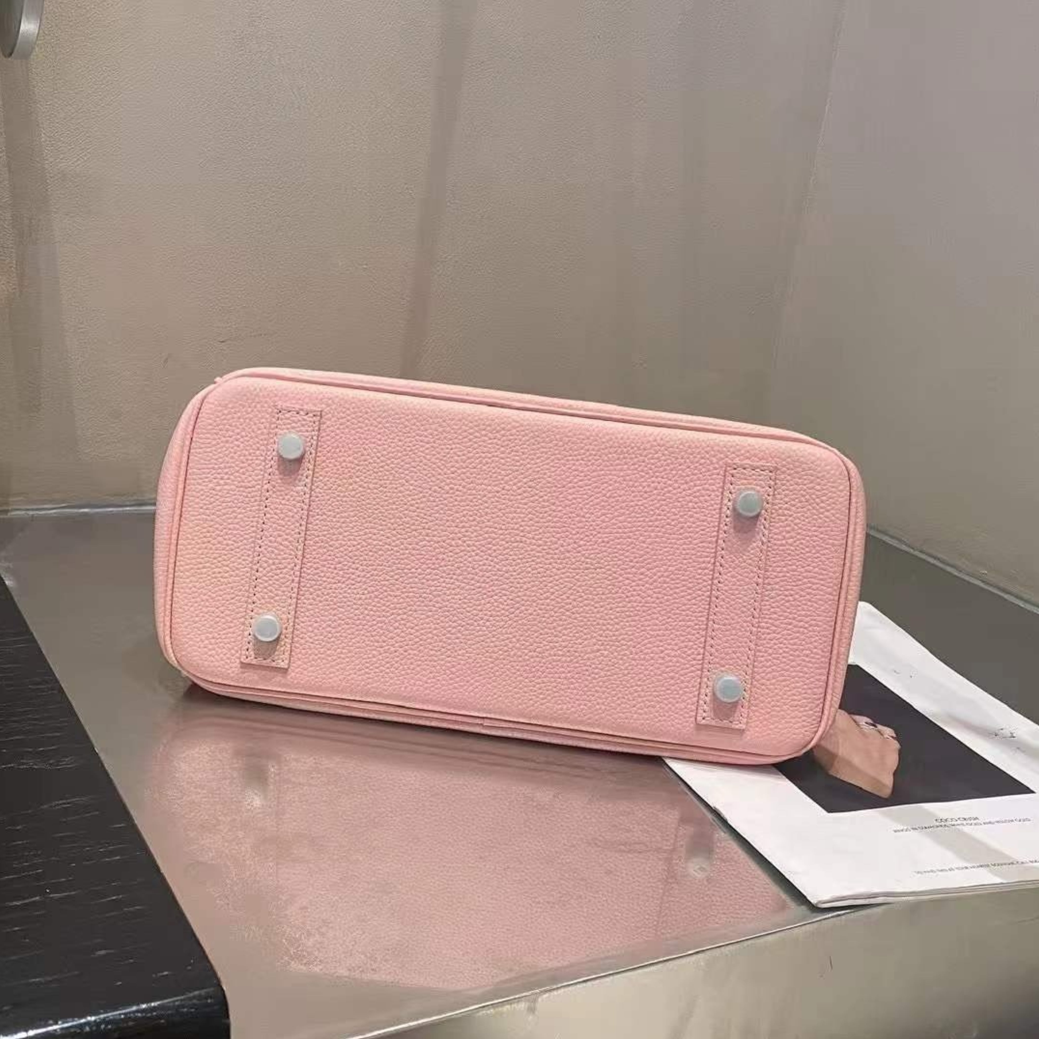 牛革製プレットベルトトートバッグ