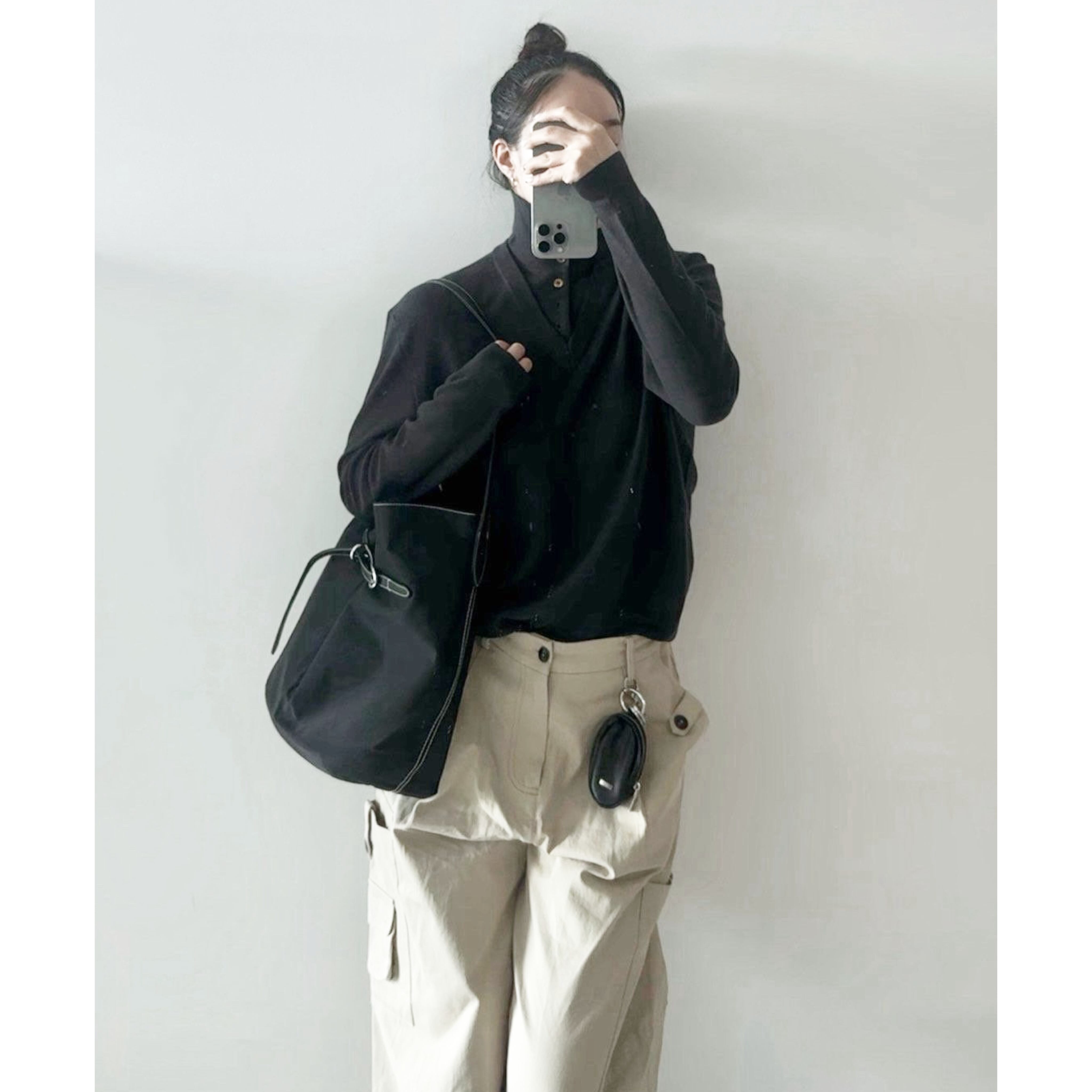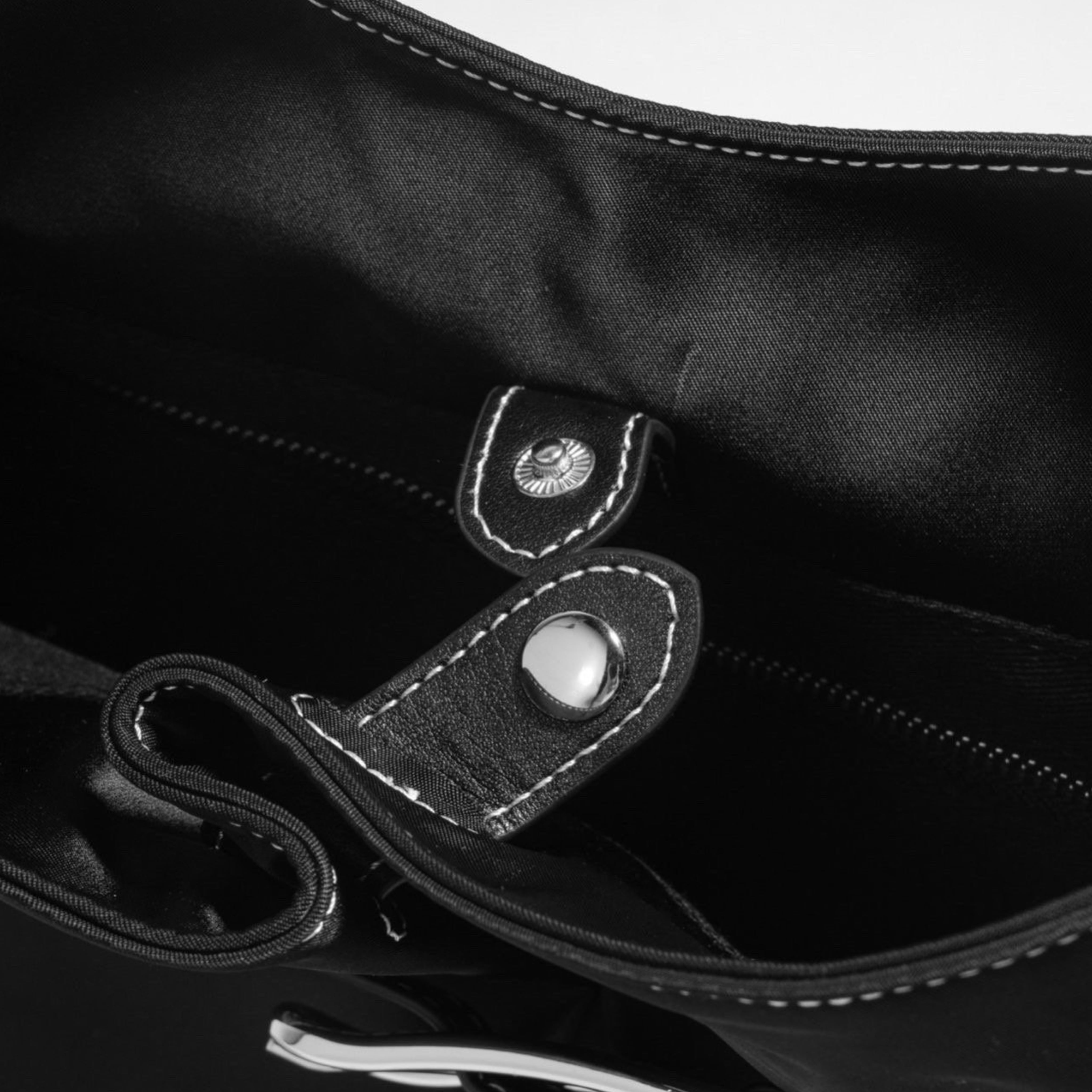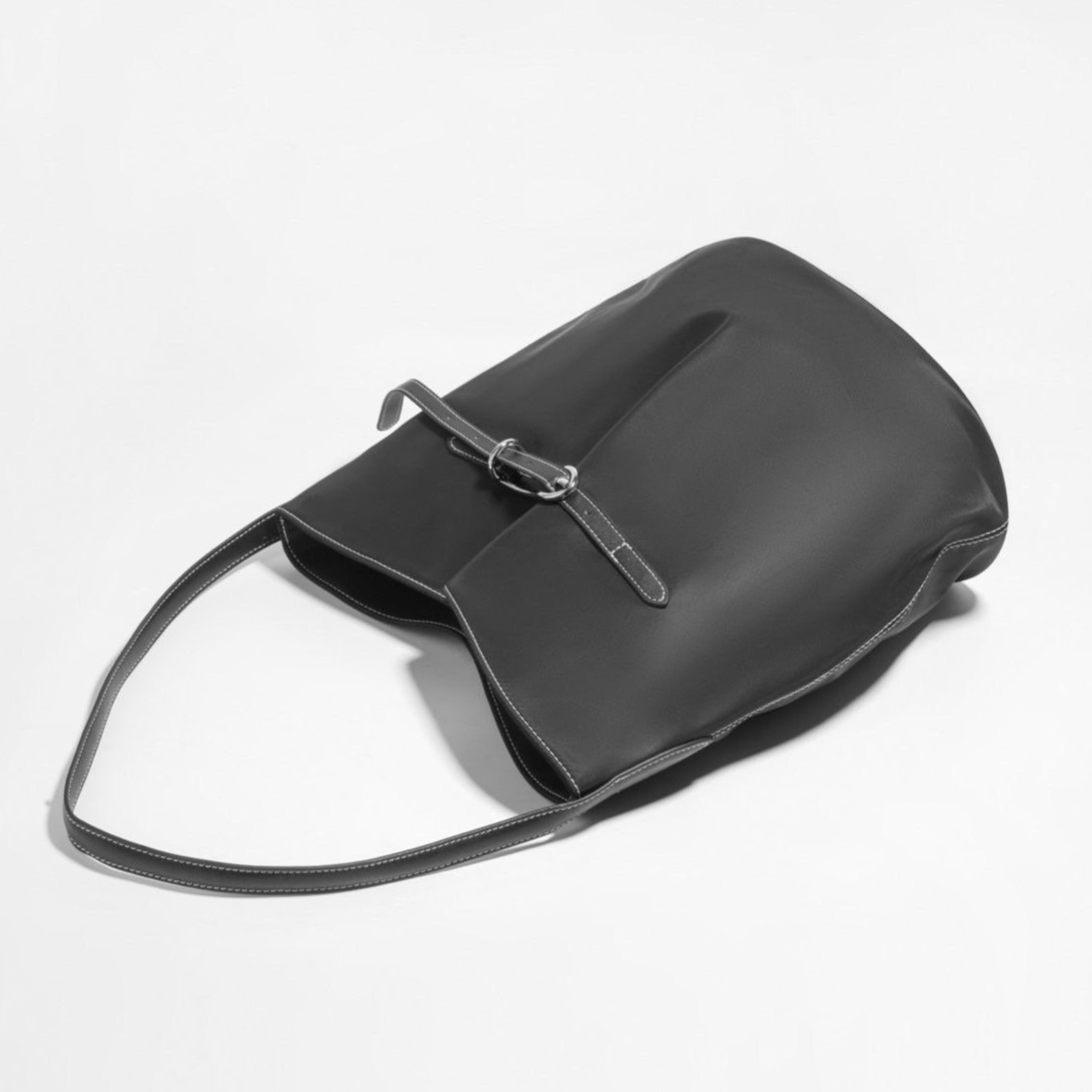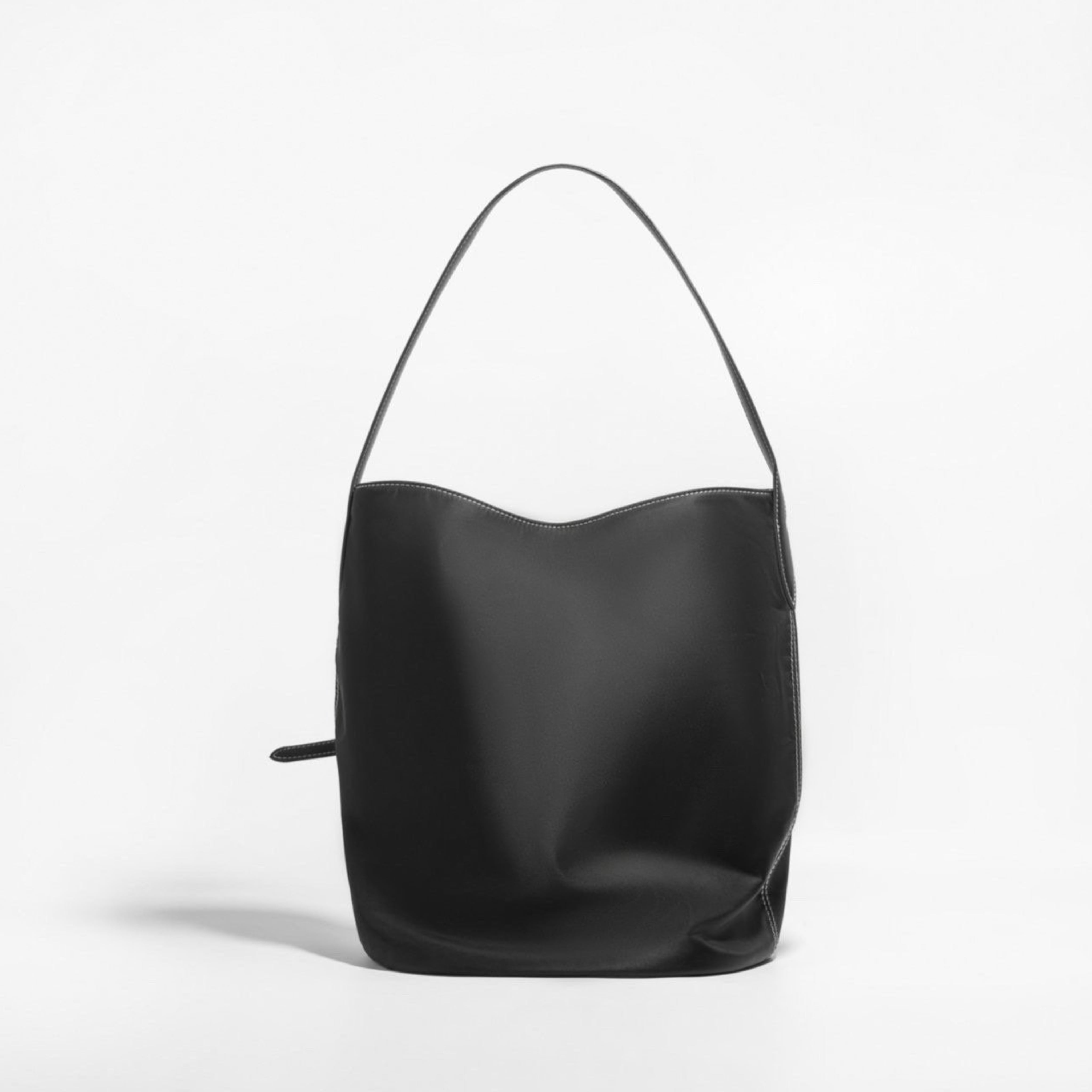 撥水性に優れたナイロン素材を使用したこのショルダーバッグは、スタイリッシュなバックルデザインと美しいステッチが特徴です。サイズはW32H32D18cmで、シンプルなブラックのワンカラーがどんなコーディネートにもマッチします。