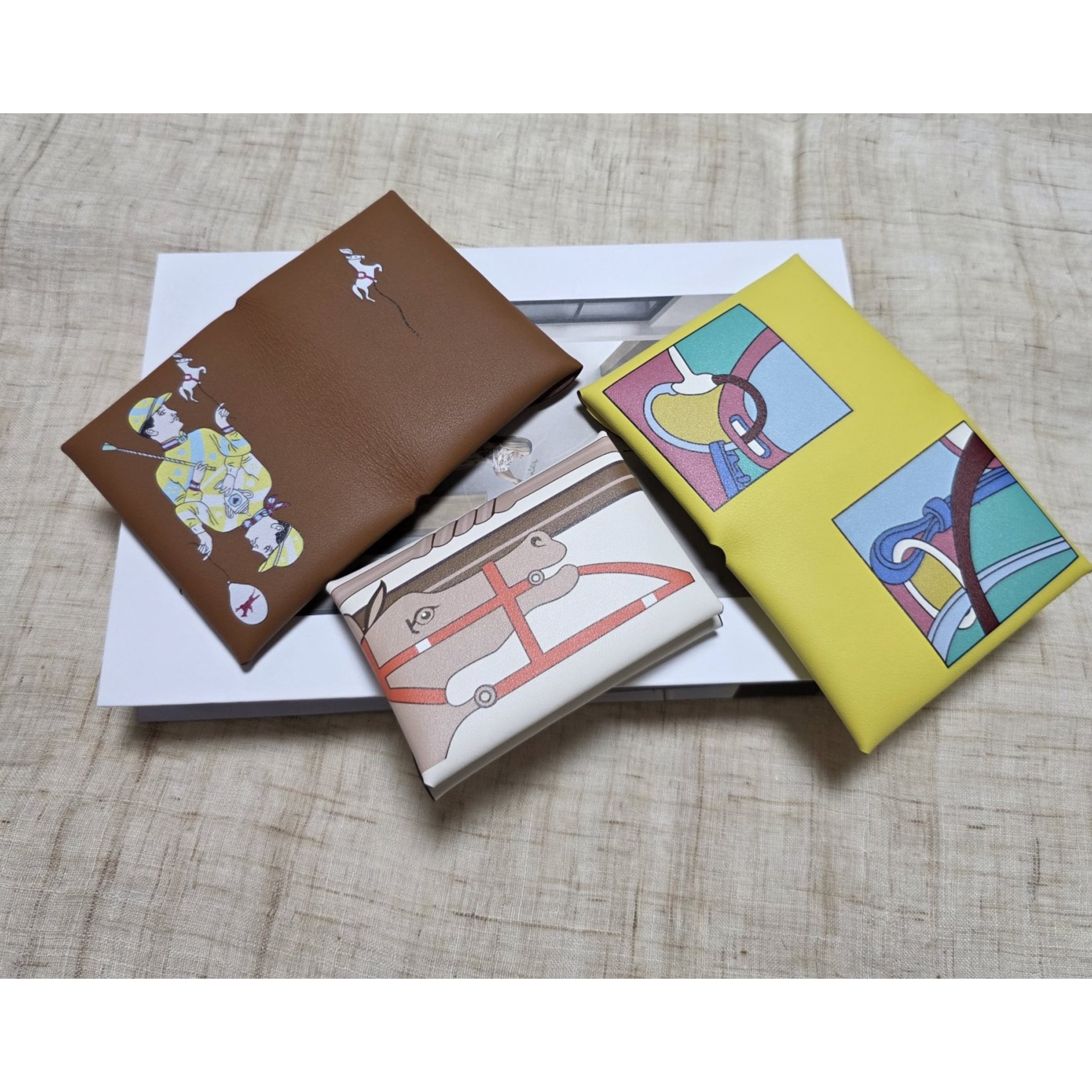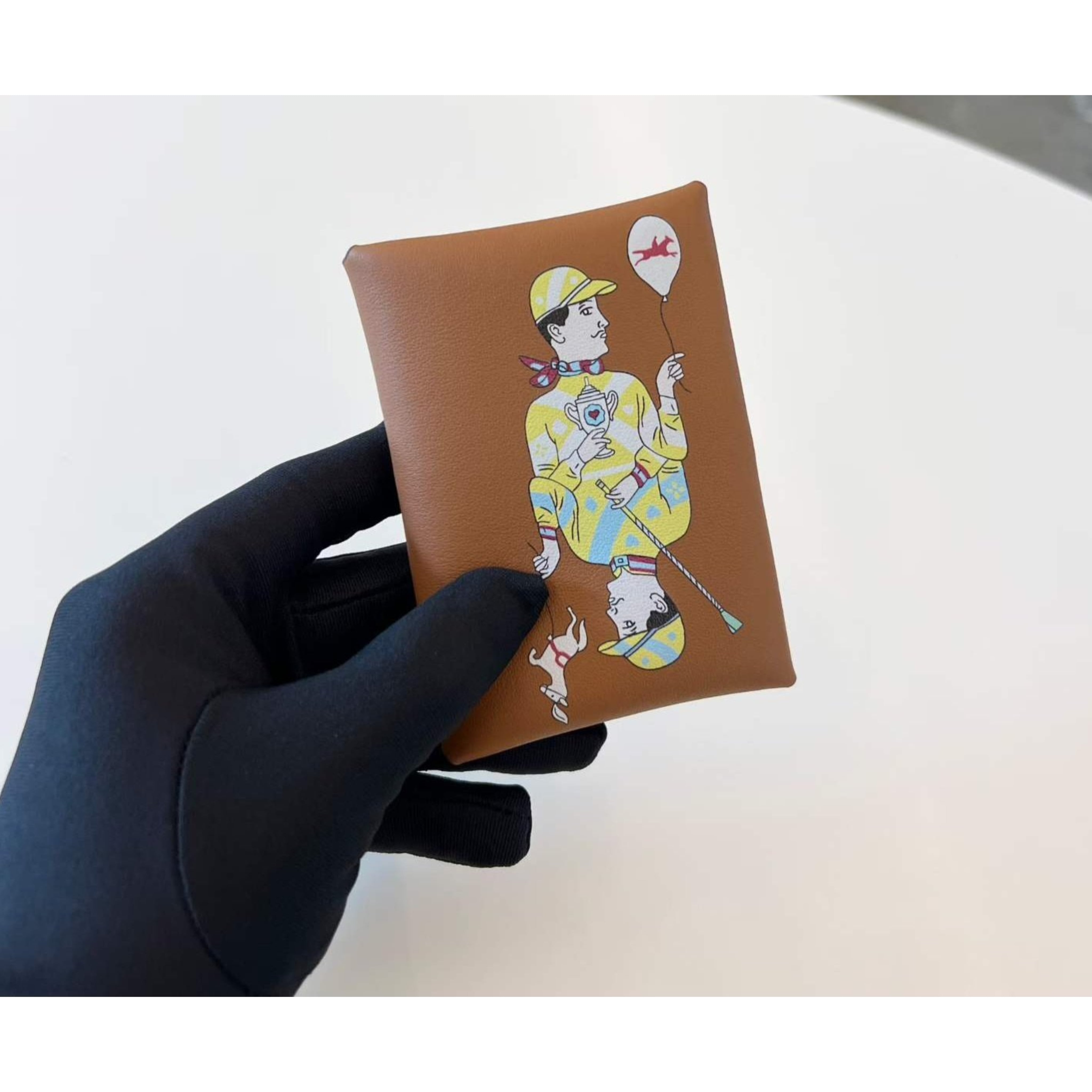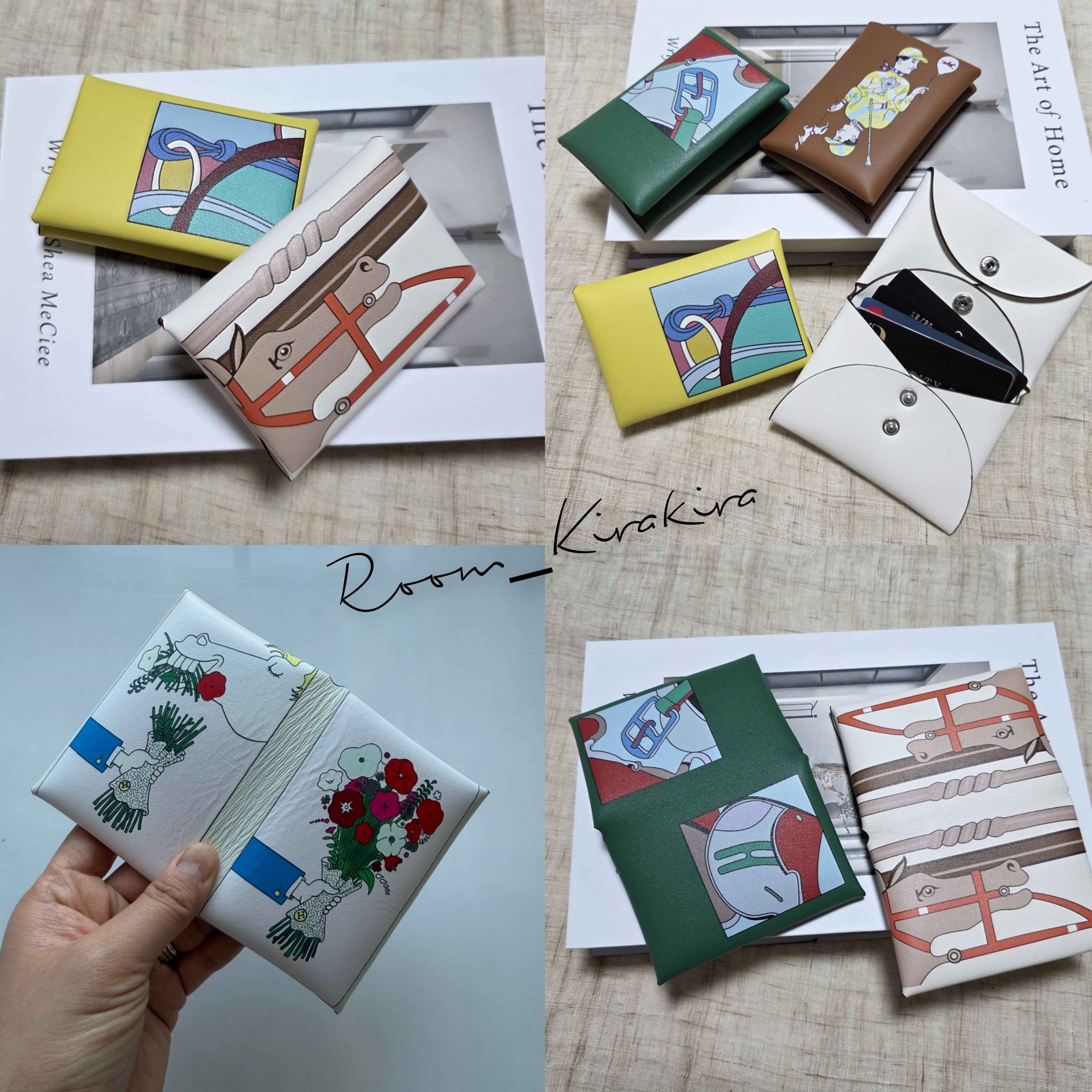 高級感あふれる牛革を使用したこのプリントカードケースは、デザインと実用性が見事に融合したアイテムです。サイズはW10.5H7.5D2.5cmで、ブラウン(男性トロフィー柄)、アイボリー(ロディオ柄)、グリーン(ベルト柄)、イエロー(ループ柄)、ホワイト(馬と花束柄)の全5色からお好みの一色を選べます。