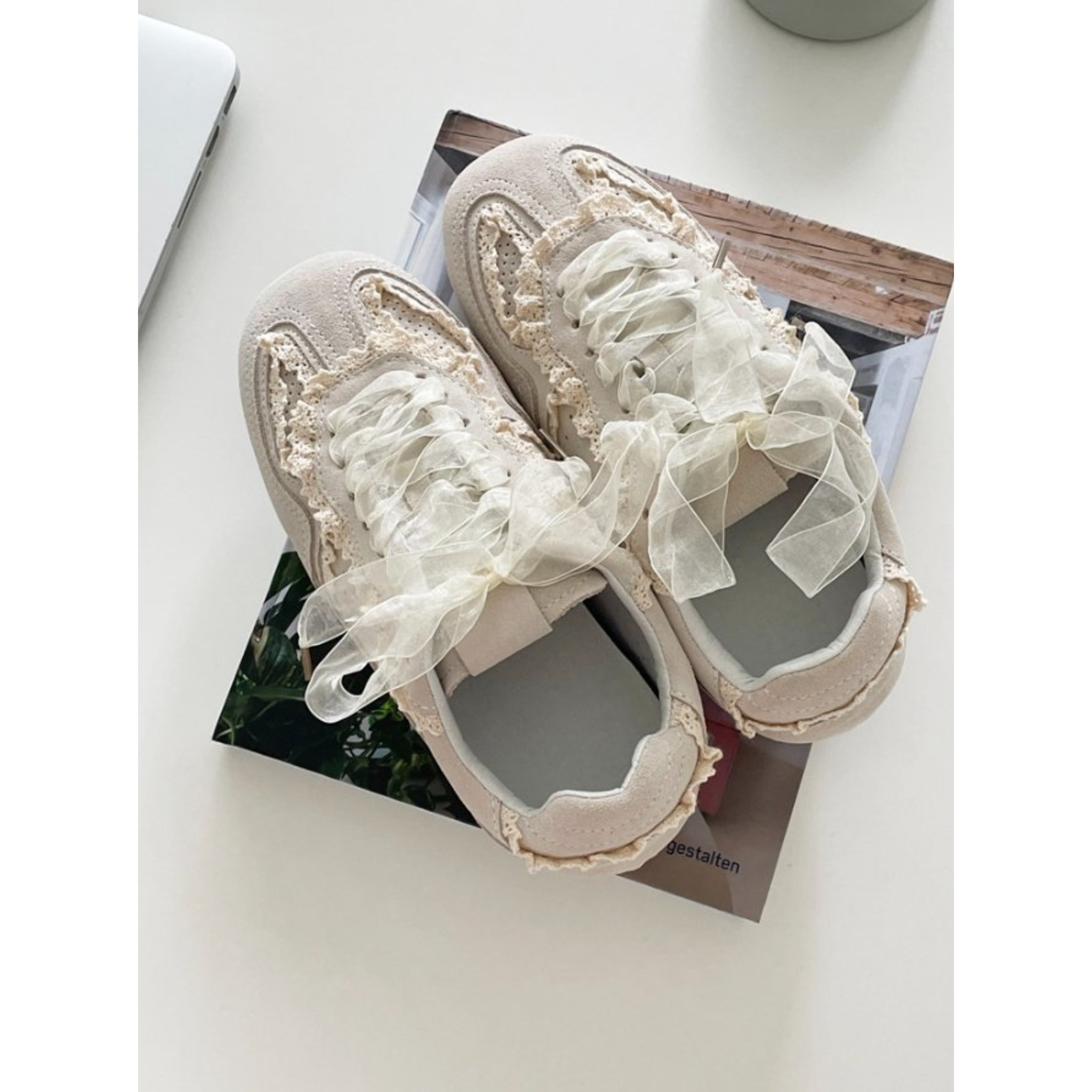 牛革製レースラインスニーカー