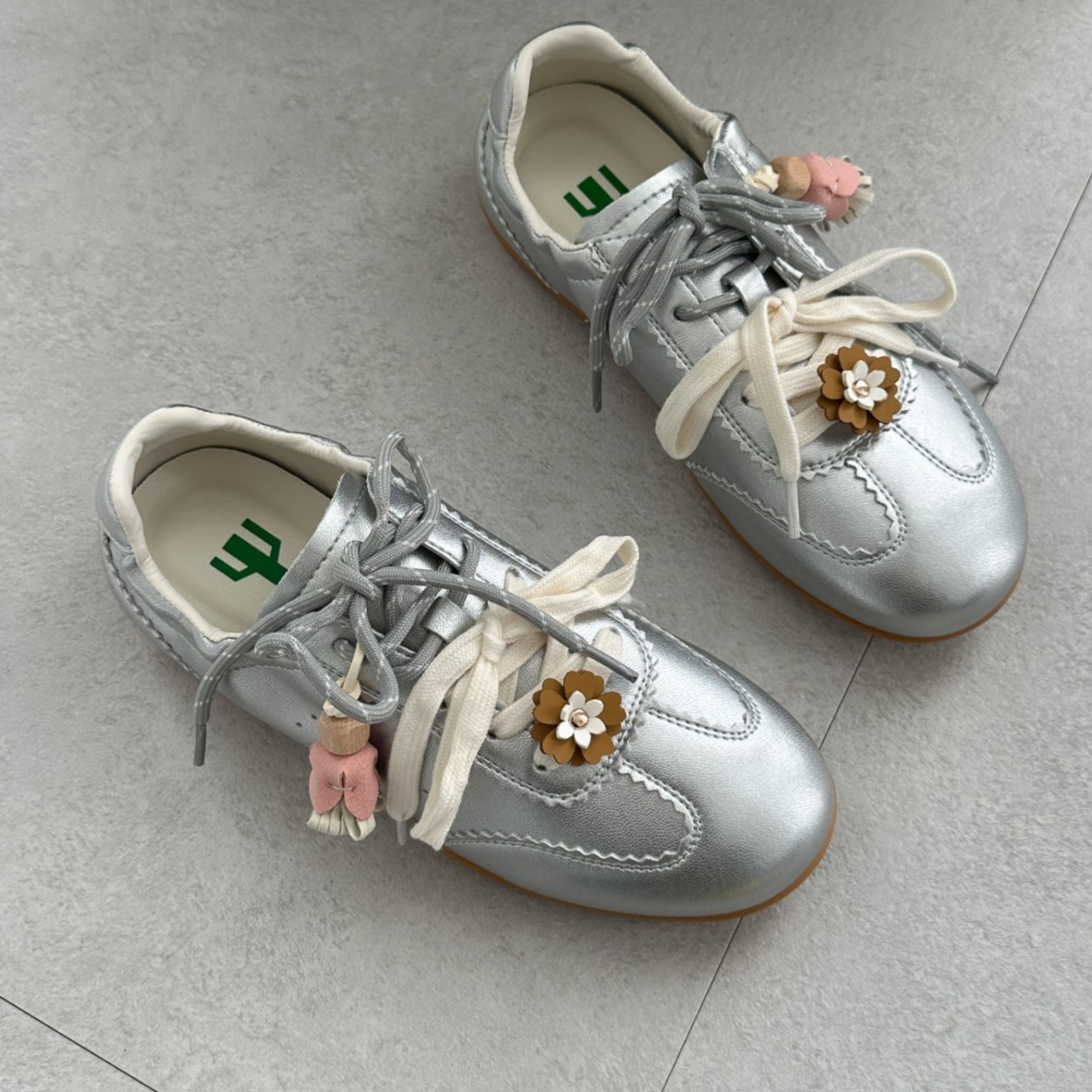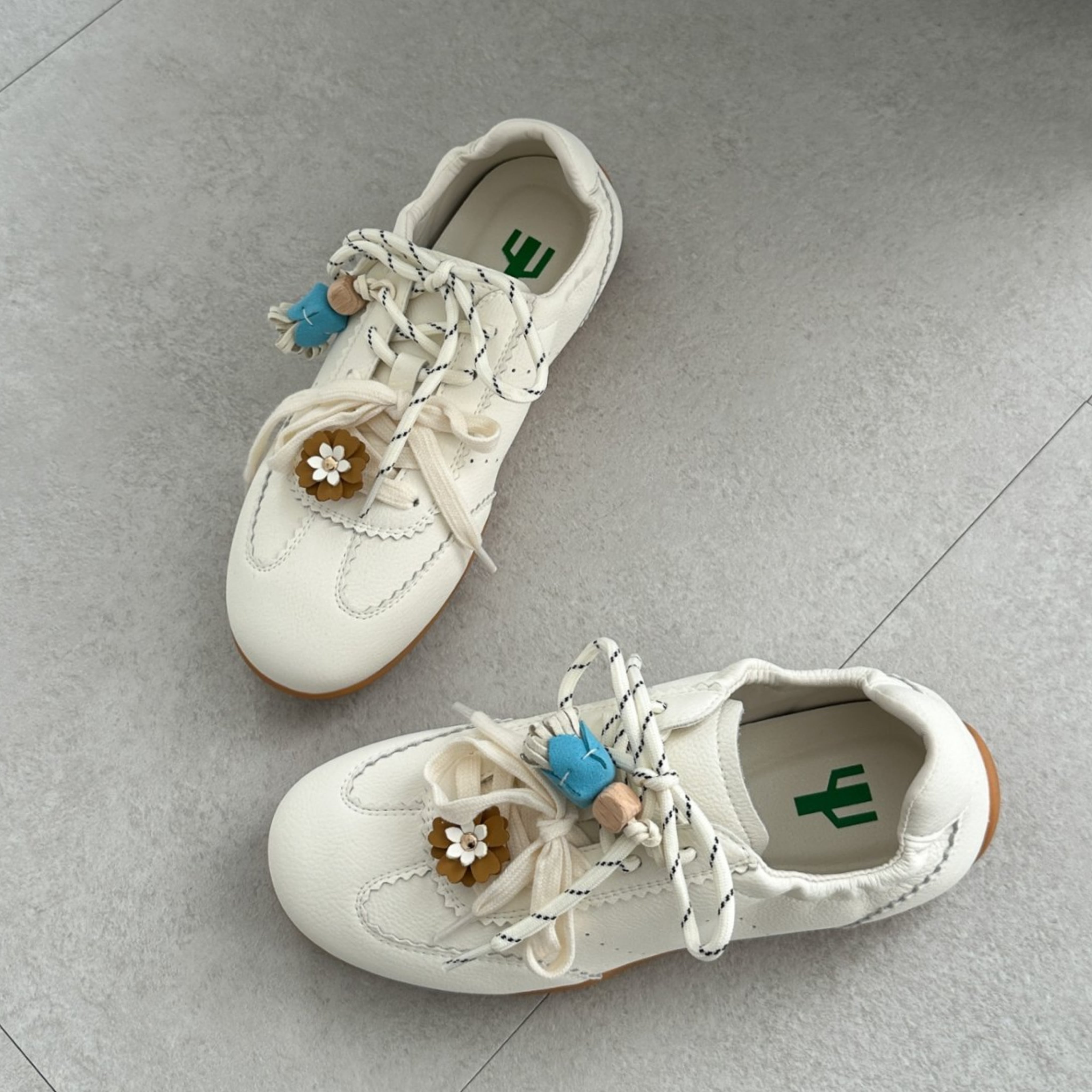 この牛革製レースアップスニーカーは、レースカットラインと小花のデザインがポイントで、お洒落な印象を演出します!カジュアルなコーディネートにもぴったりで、普段使いはもちろん、特別なシーンでも活躍します。快適さとデザイン性が見事に調和したスニーカーで、あなたの個性を引き立てる素敵なスタイルを楽しんでください!