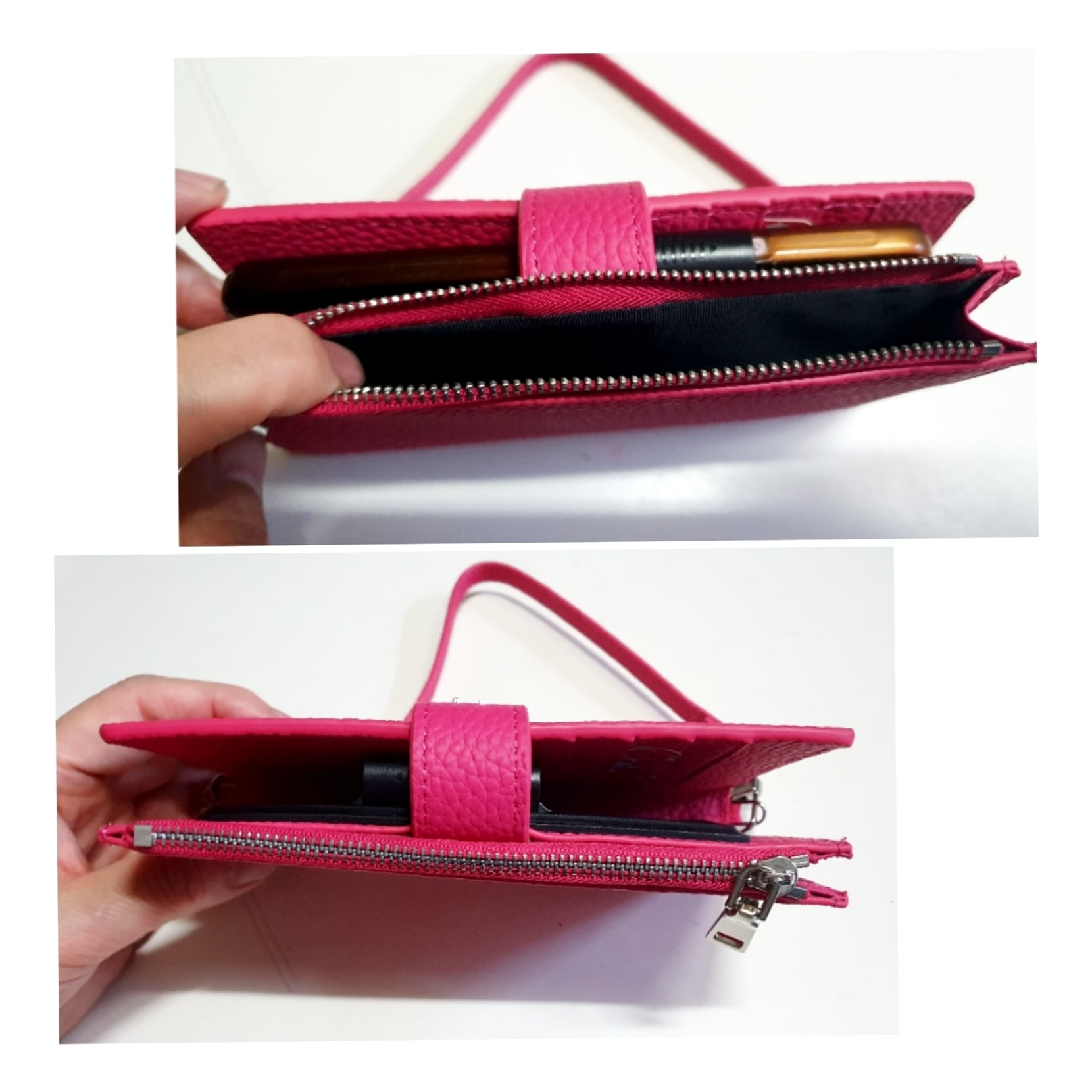 ジッパー仕様のポケット付きで、ウォレット兼用で使用できます。