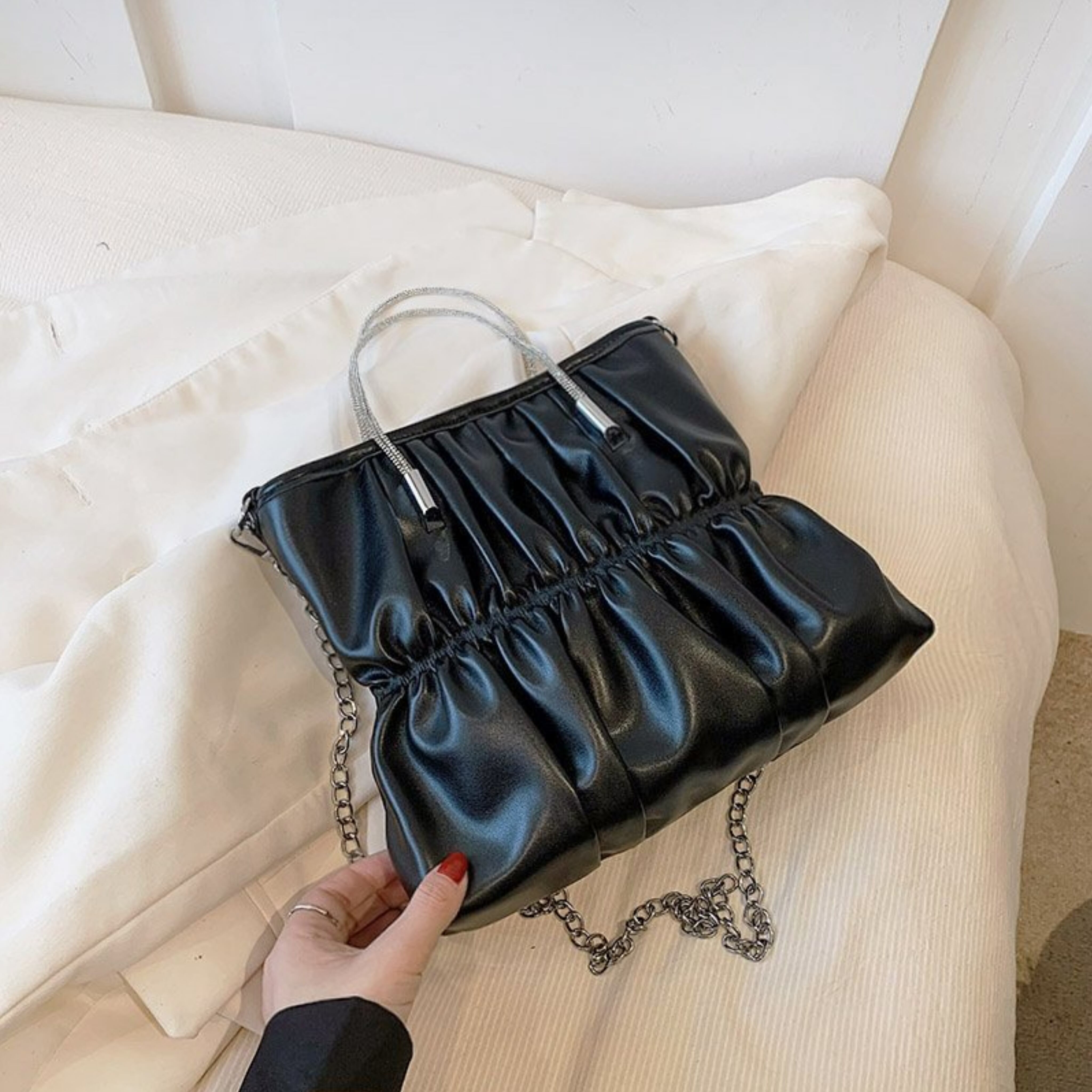 ハンドル部分はラインストーンをあしらった、メタルポール仕様で、キラキラ感がとってもお洒落な、シャネルスクエアバッグです。