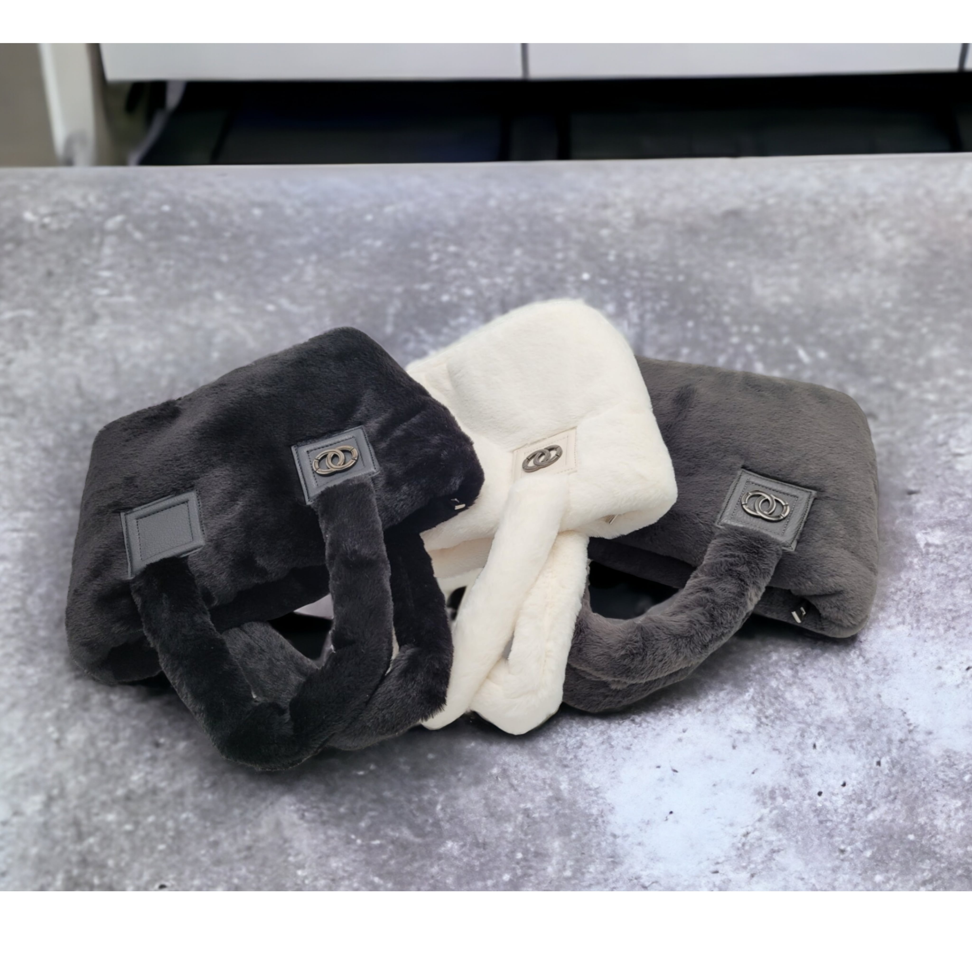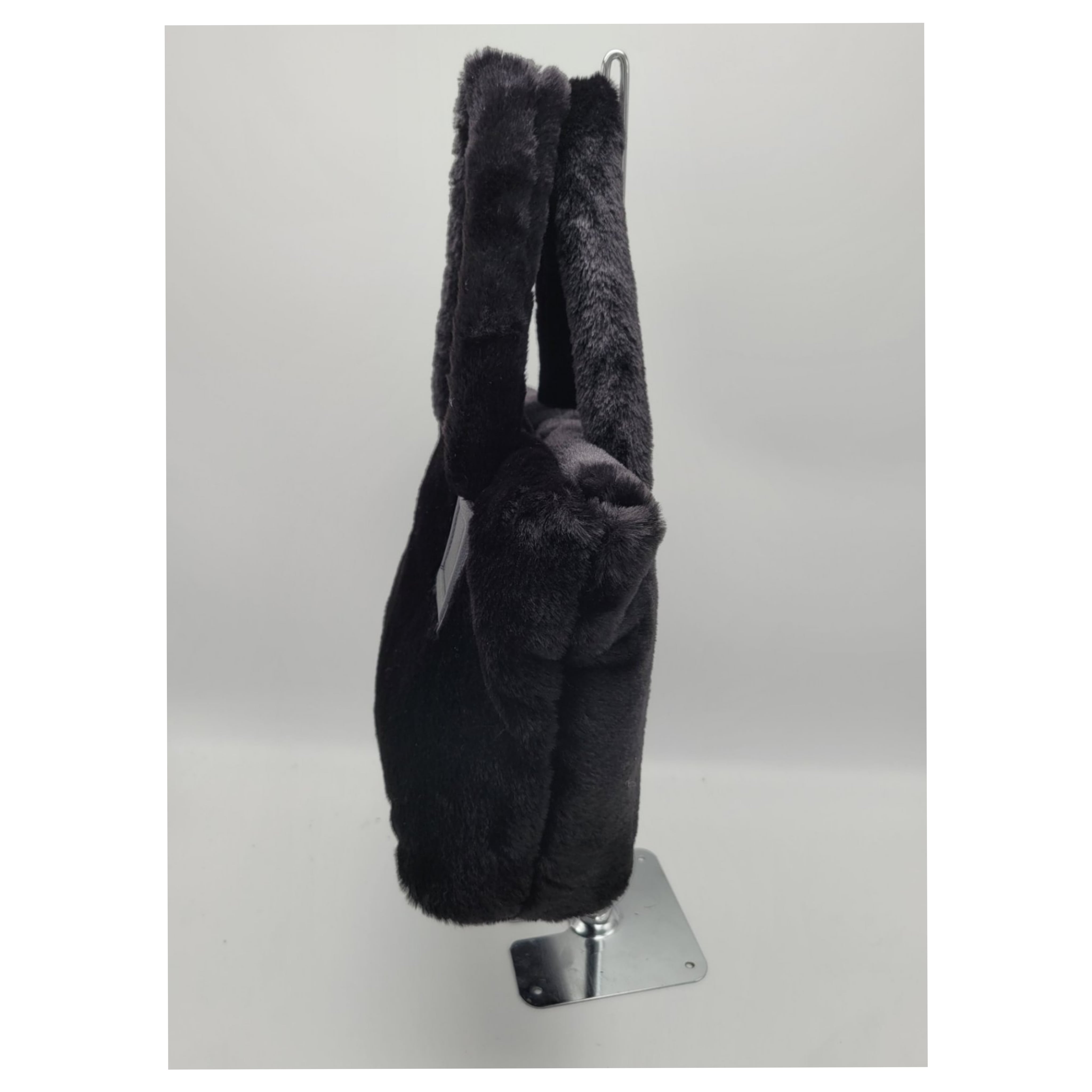 Wリングのメタルがポイントの、良質のフェイクファーで肌触りが滑らかな高級感溢れるファートートバッグです。