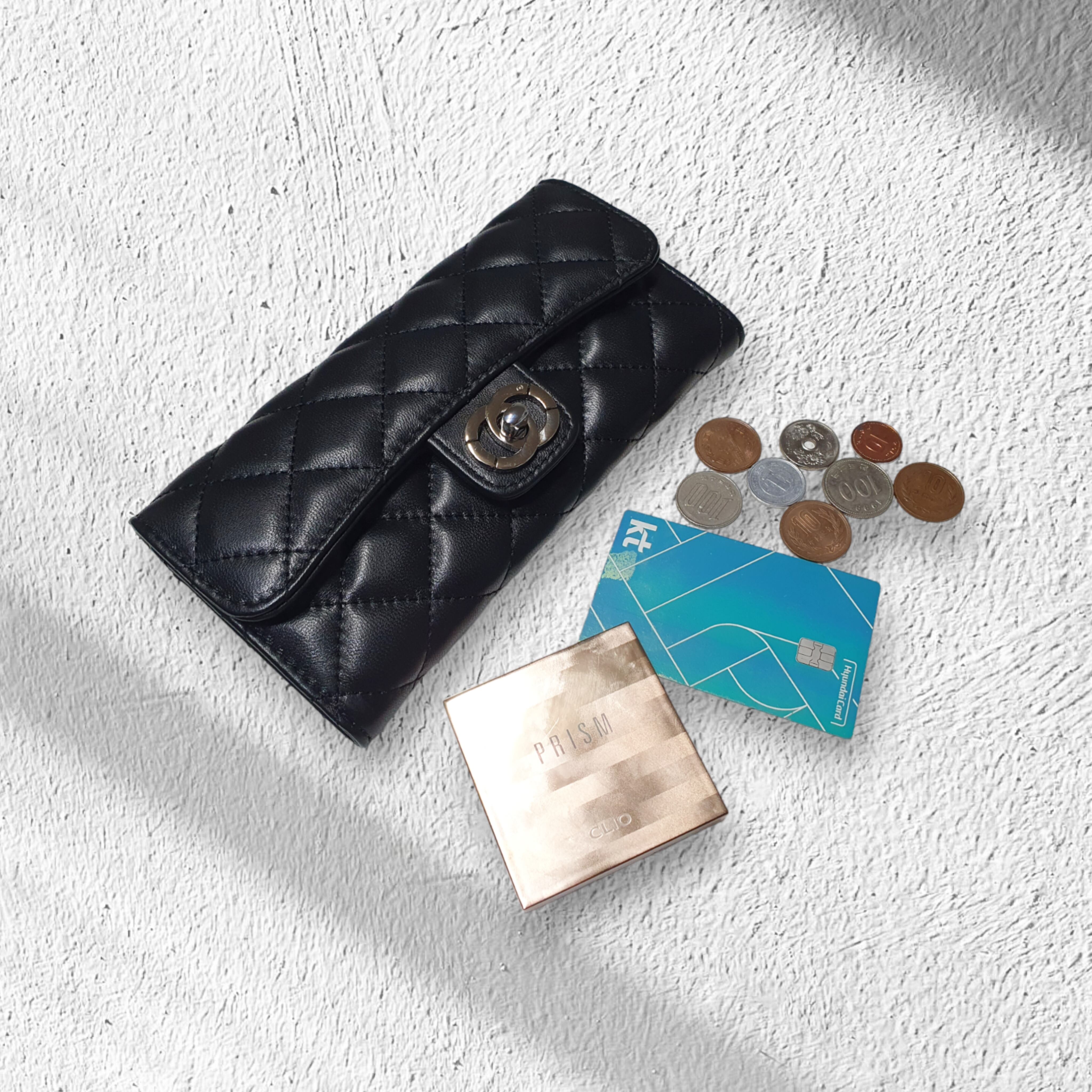 良質のラムスキンのキルティング仕様の、とっても高級感溢れるロングウォレットです。