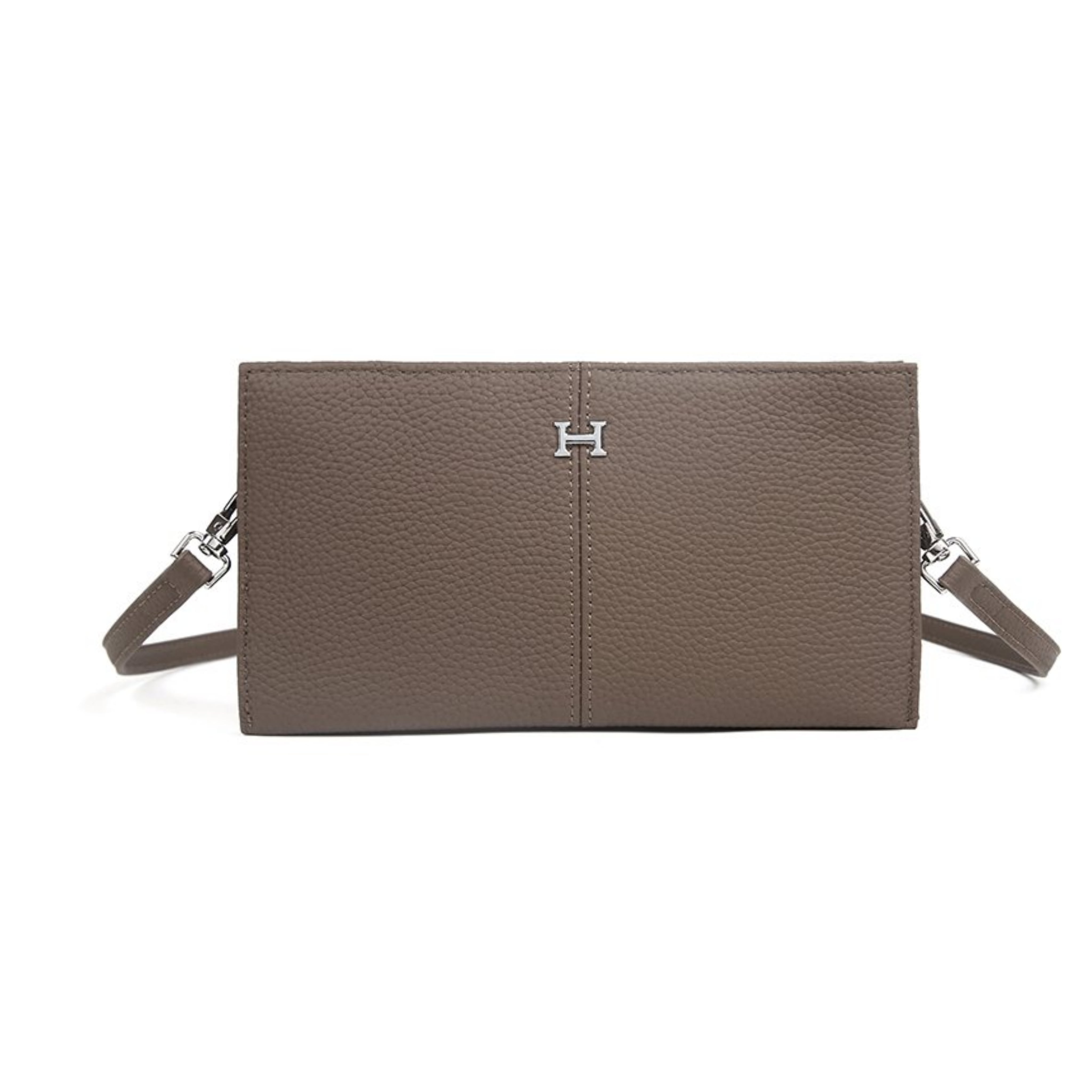 スリムなフォルムで、スマホも収納可能なサイズ感の、とってもお洒落なHウォレットポシェットです。