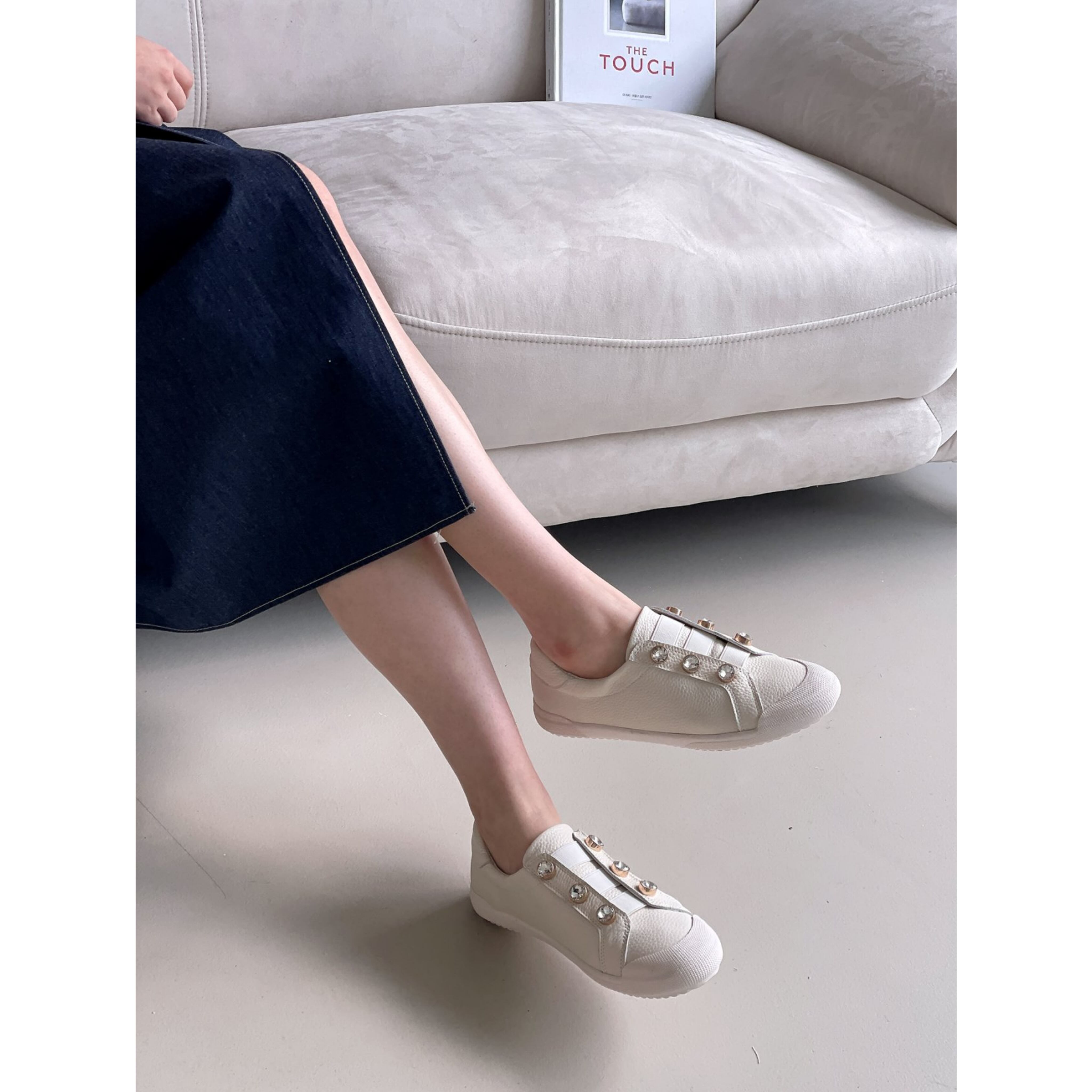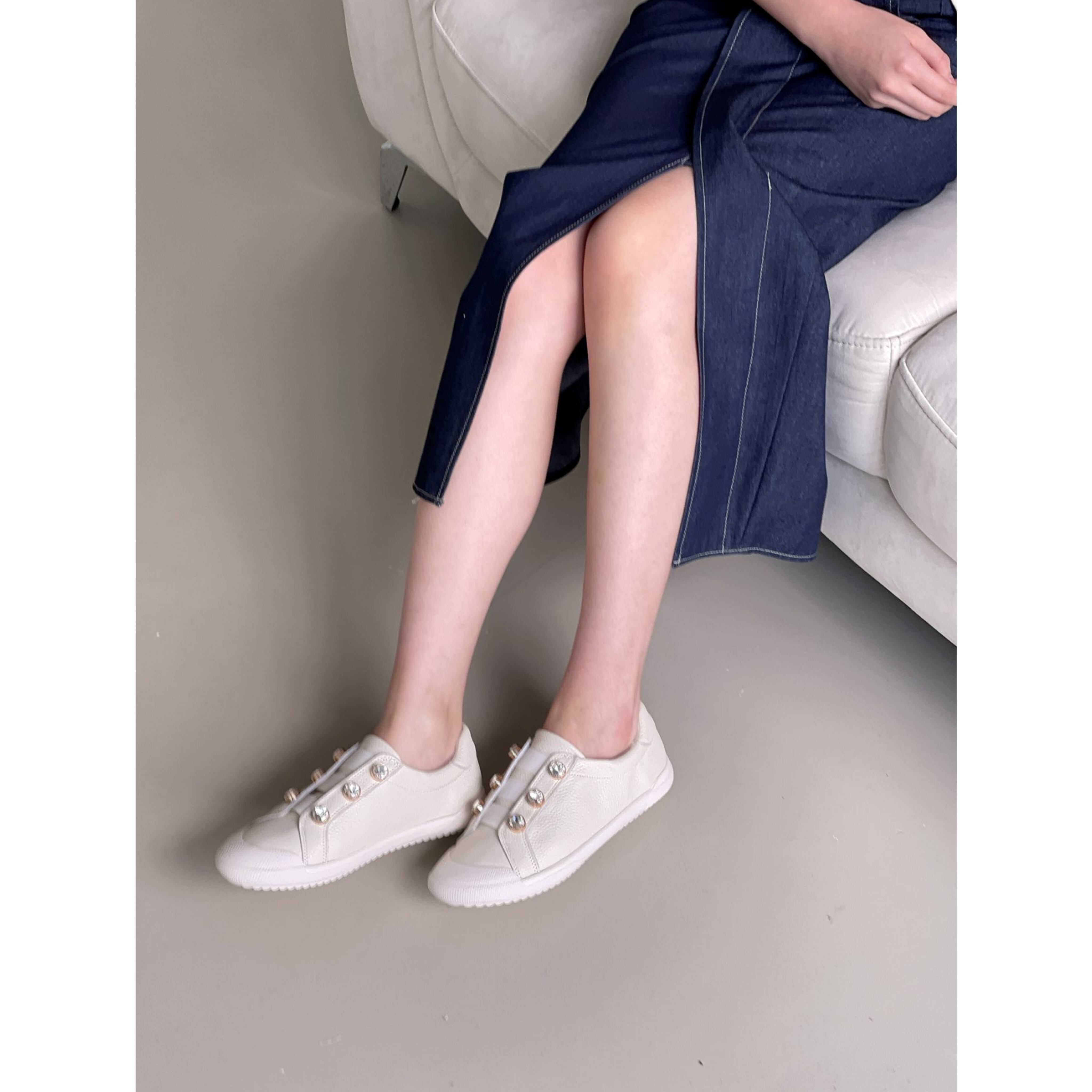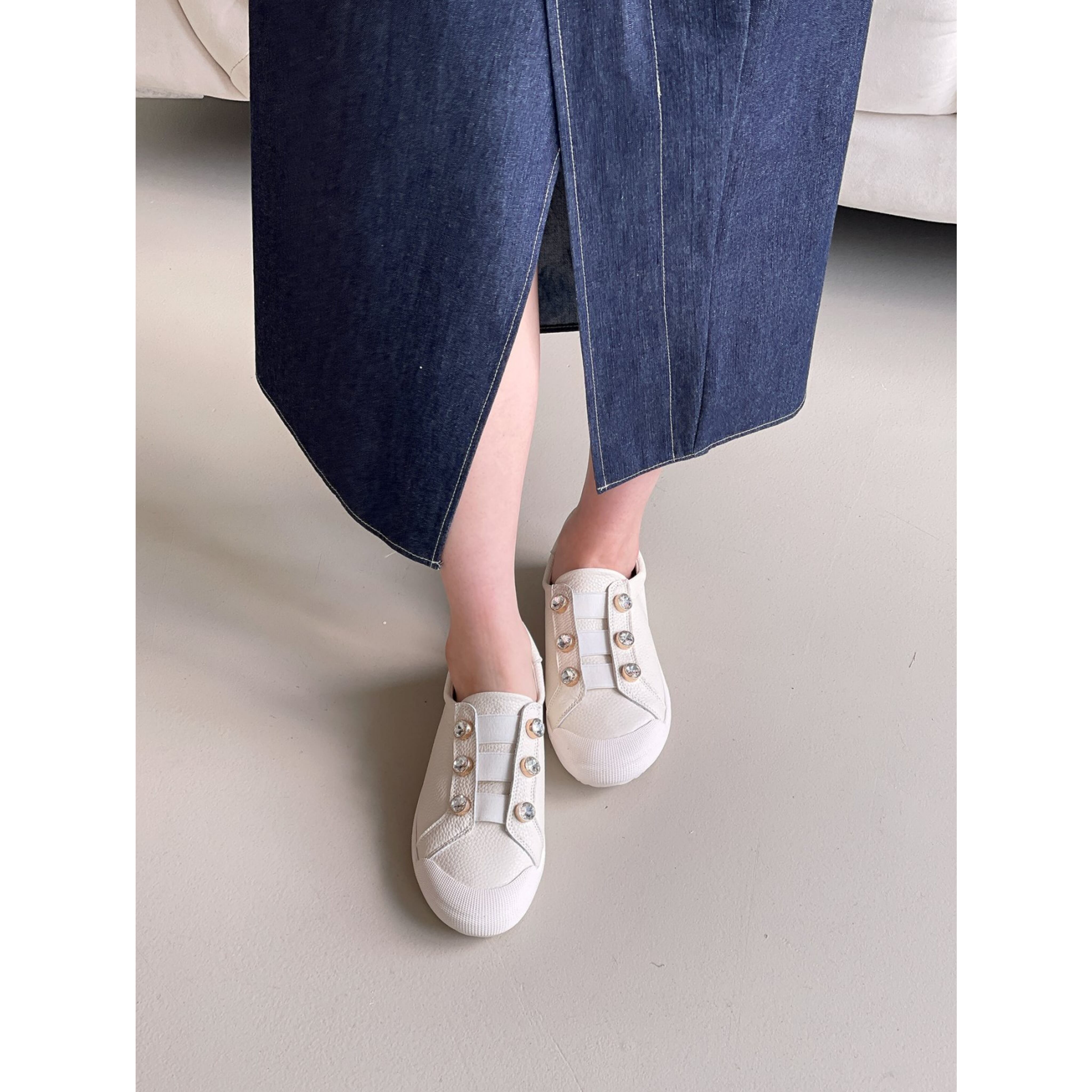 牛革製クリスタルボタンスニーカー
