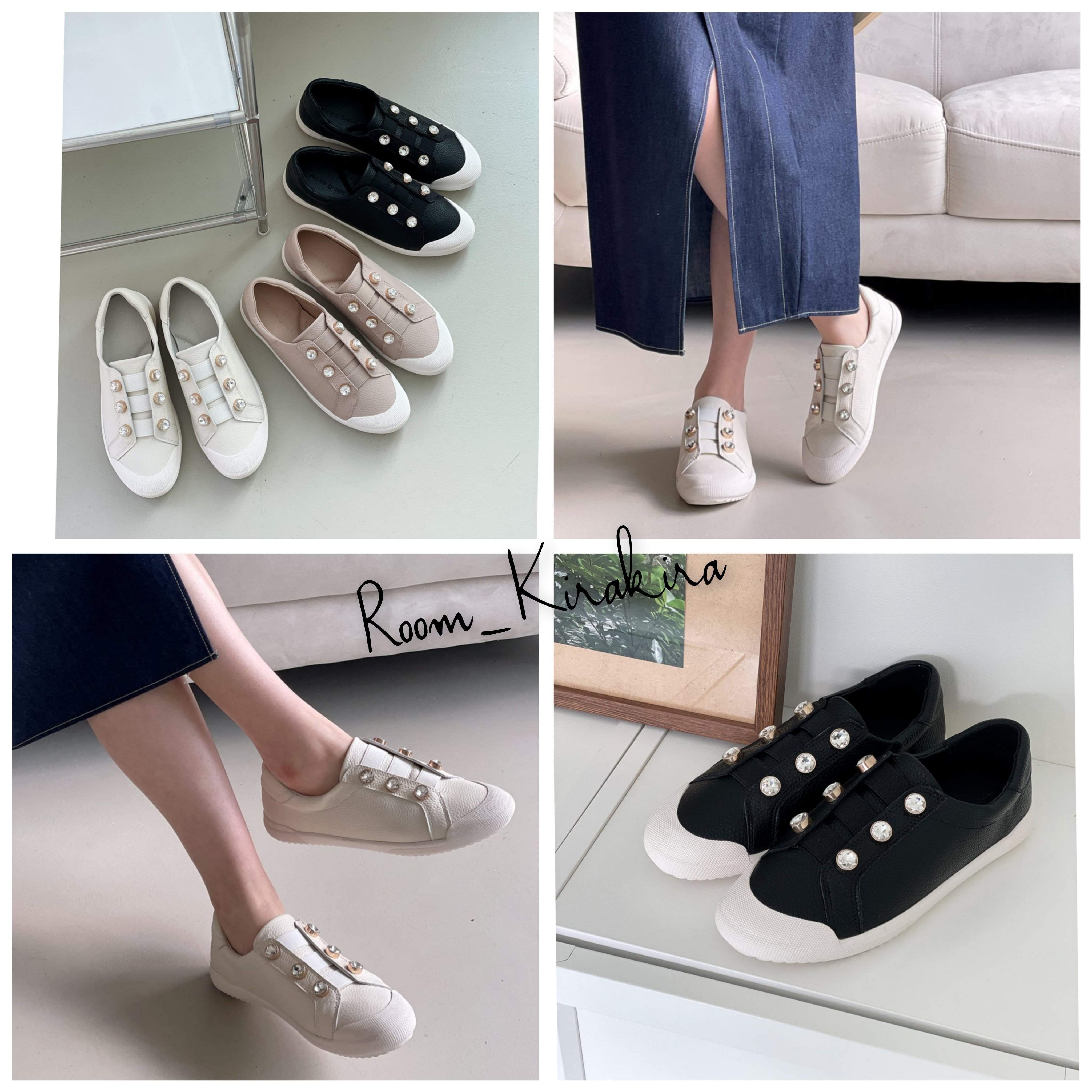 クリスタルボタンがポイントでとってもお洒落なスニーカーです。