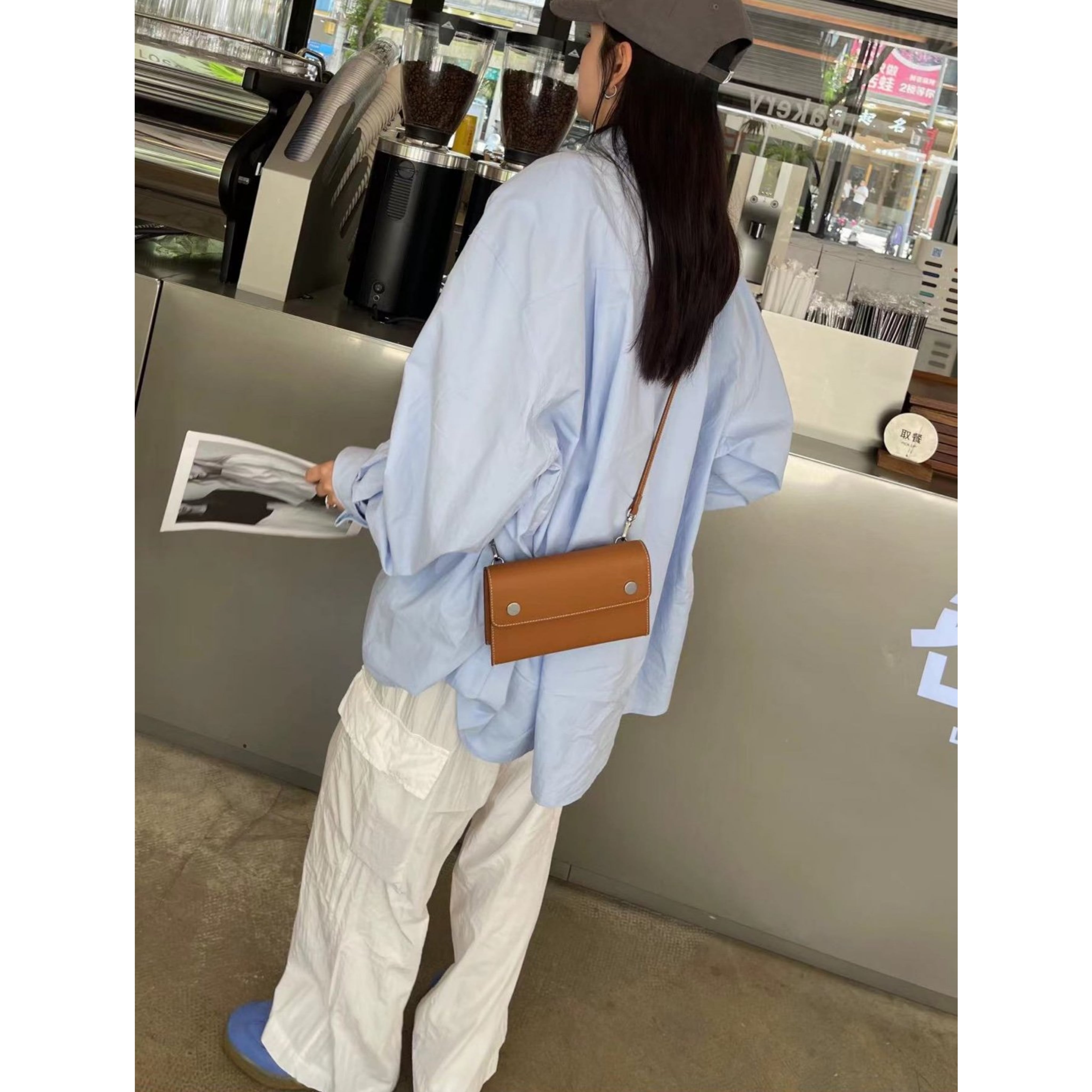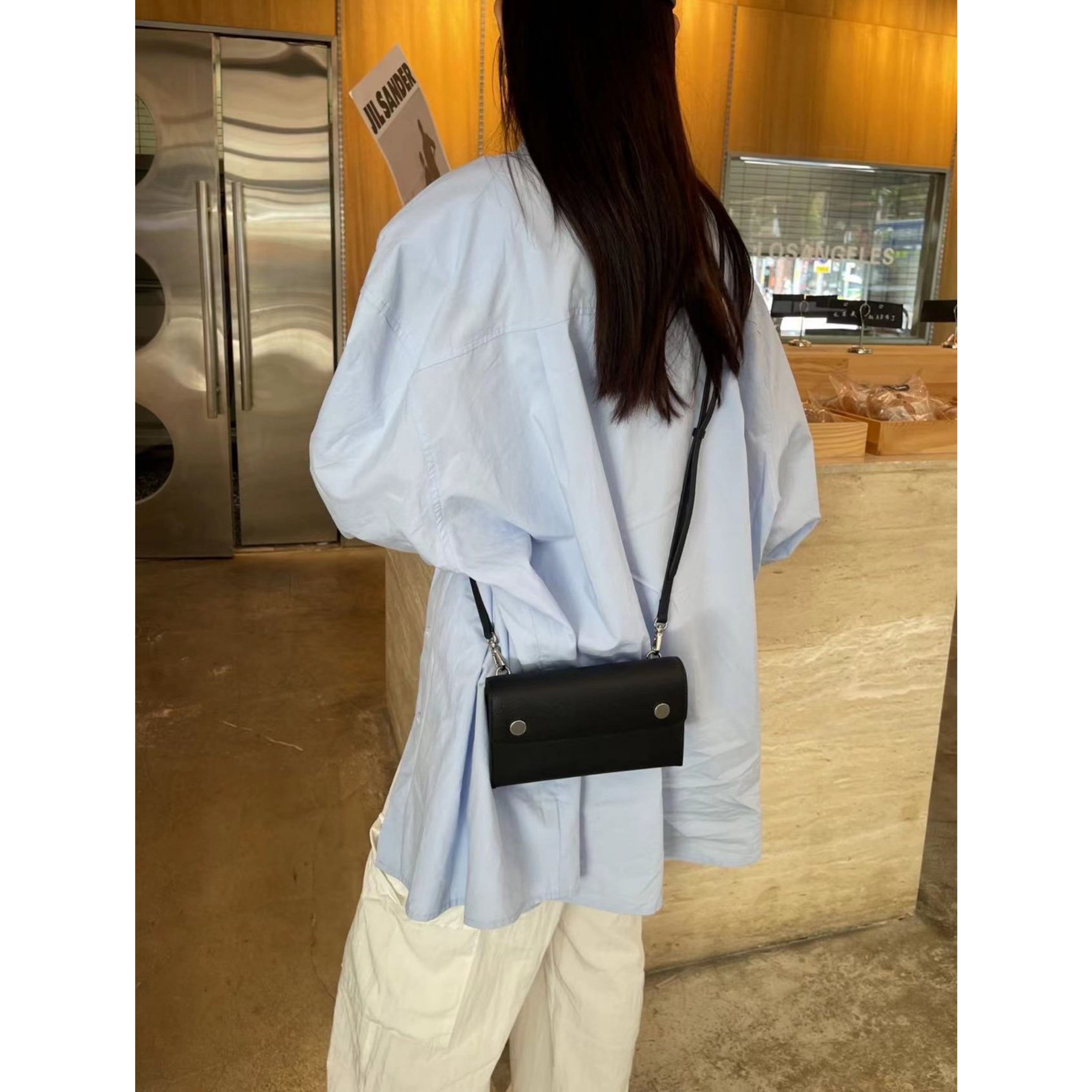 牛革製Wボタンミニクロスバッグ