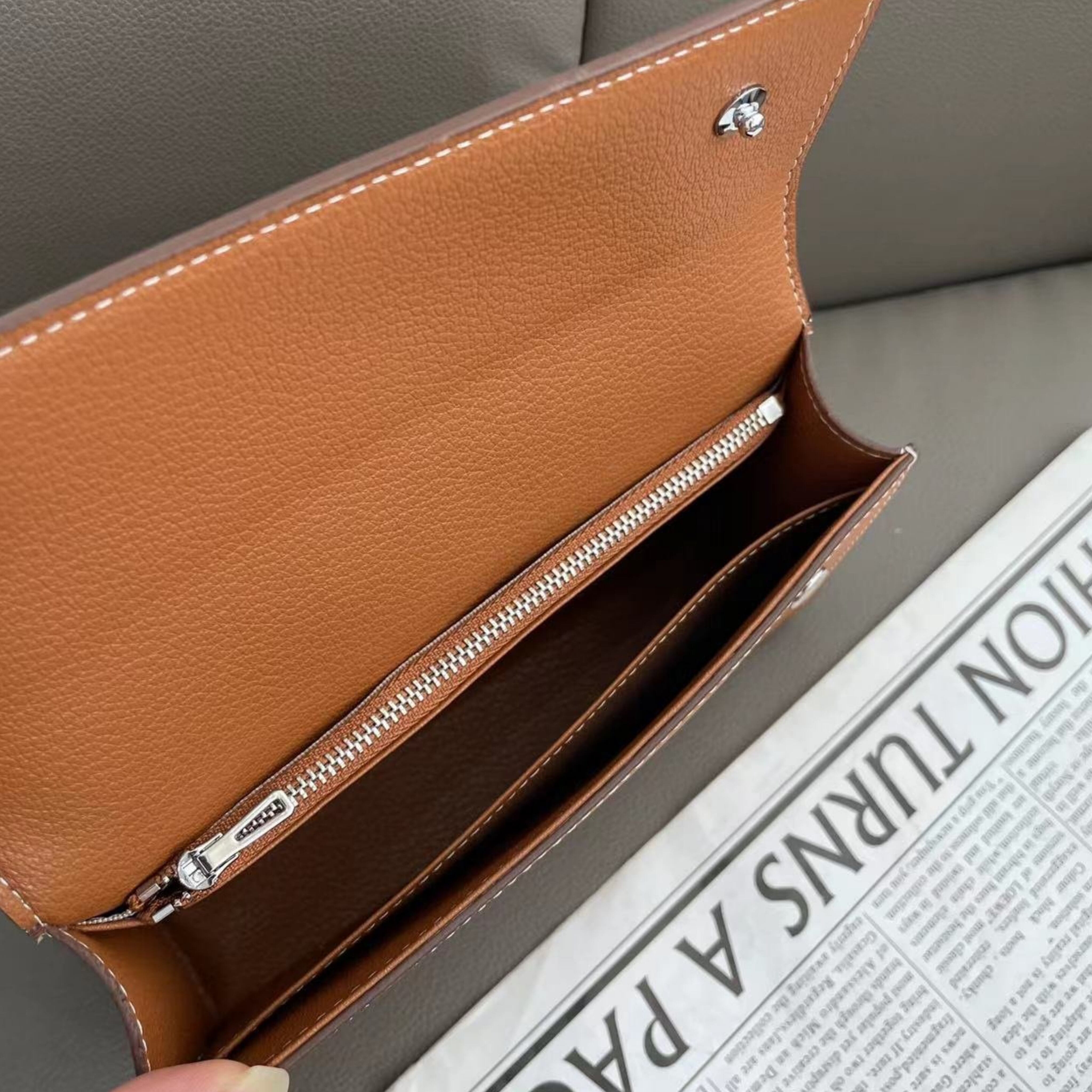 ウォレット仕様で、コンパクトサイズで携帯に便利な、高級感溢れる牛革製ミニクロスバッグです。