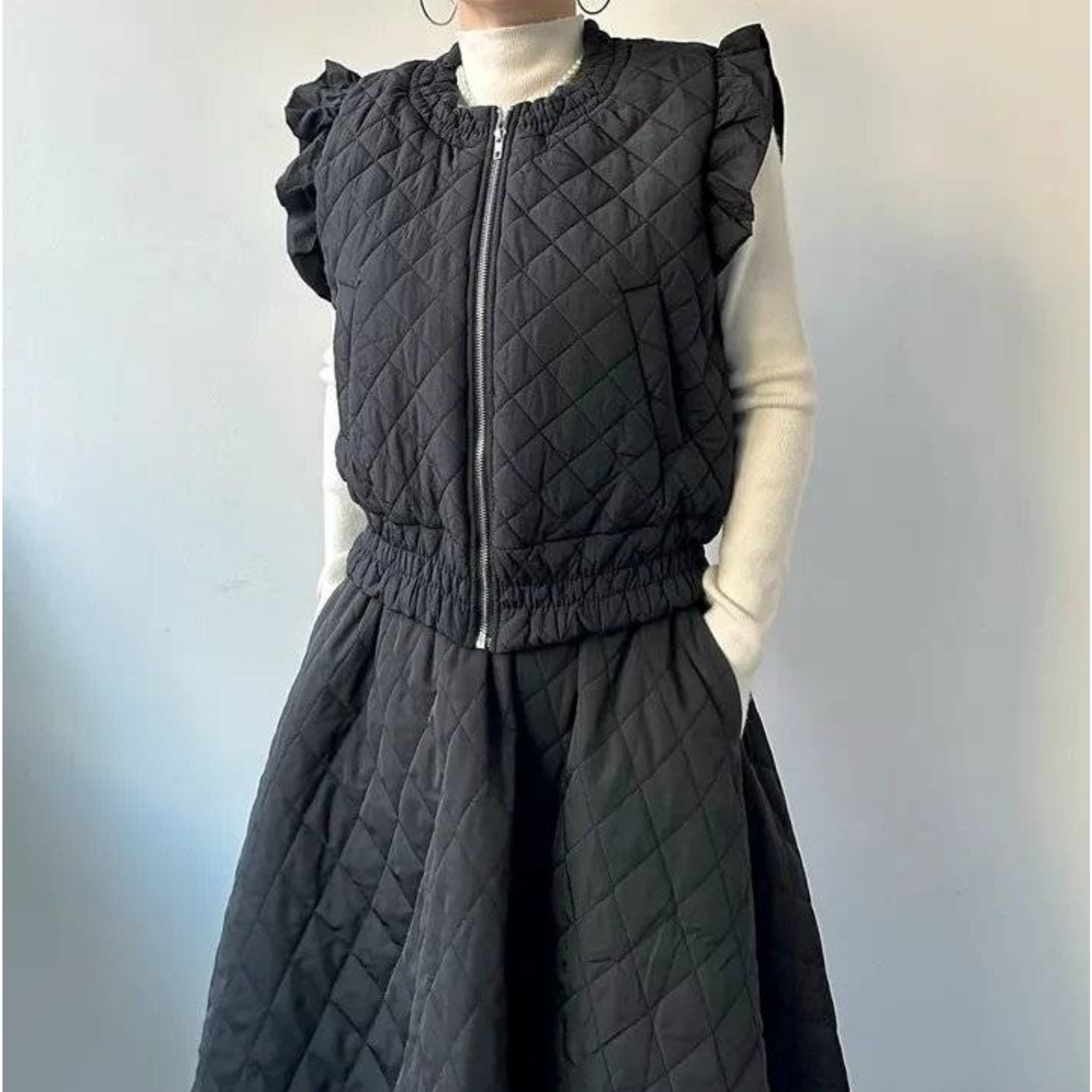 キルティングベスト&フレアースカートセットのご紹介です。